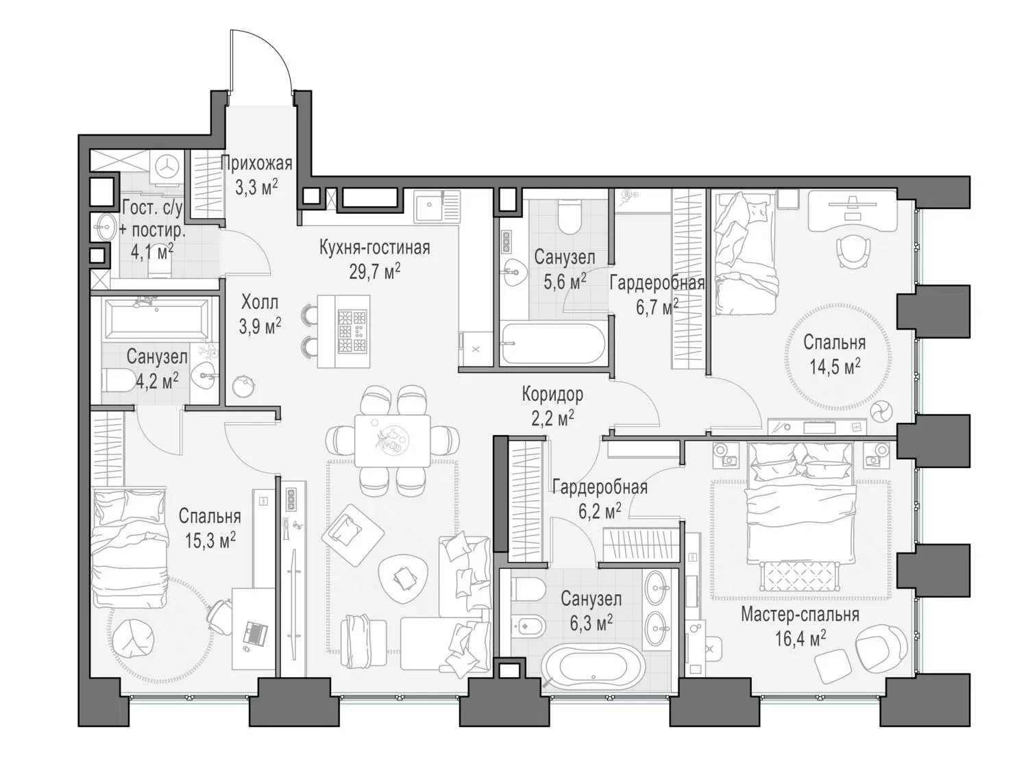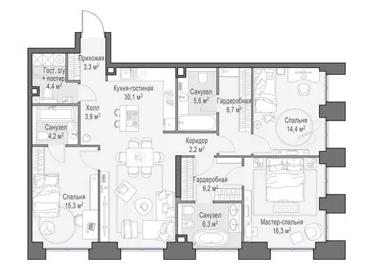 119.3 м² · 4 комнаты · 4/23 этаж · Июнь 2026