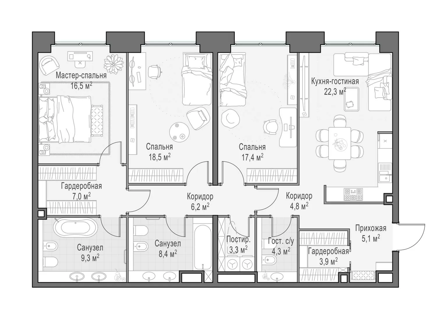 119.3 м² · 4 комнаты · 10/23 этаж · Июнь 2026