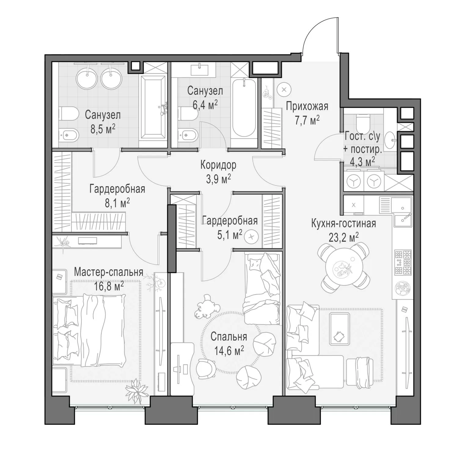 99.5 м² · 3 комнаты · 8/23 этаж · Июнь 2026