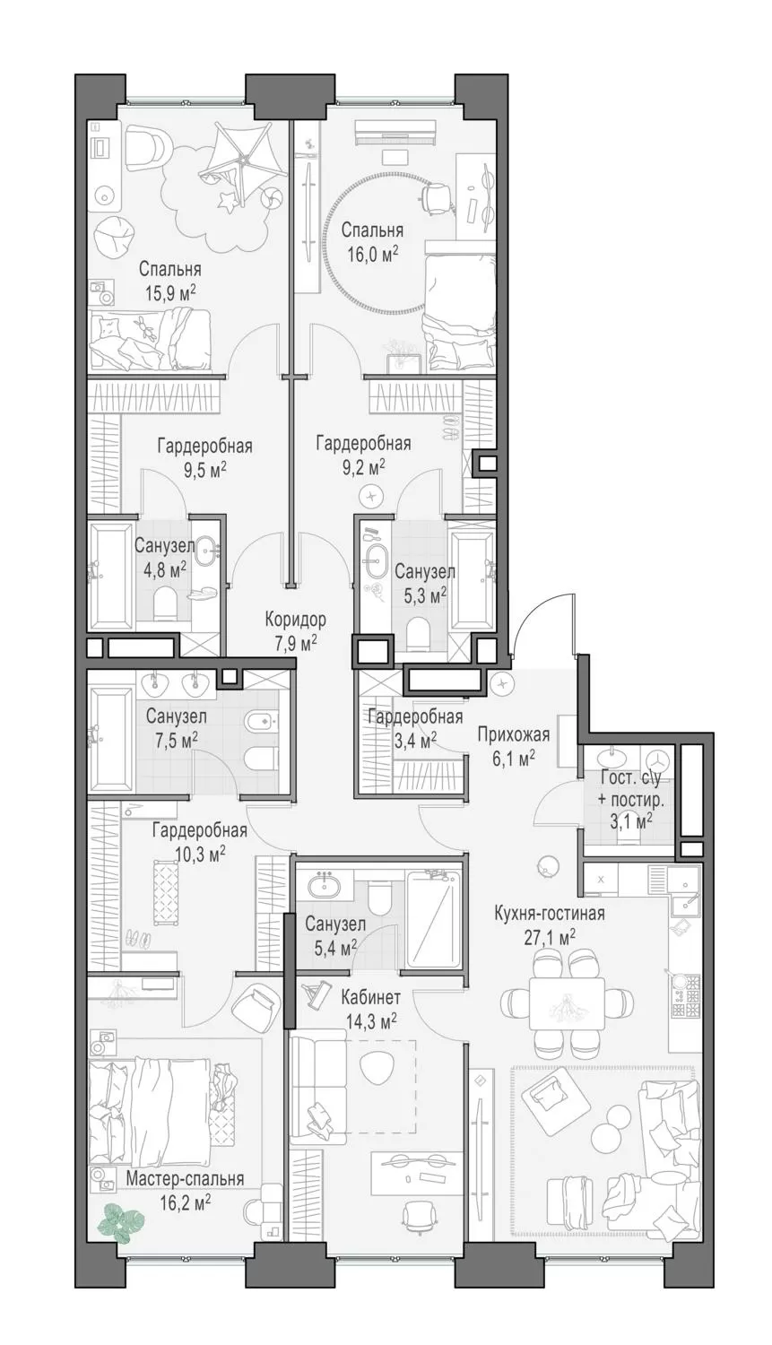 149.5 м² · 5 комнат · 13/23 этаж · Июнь 2026