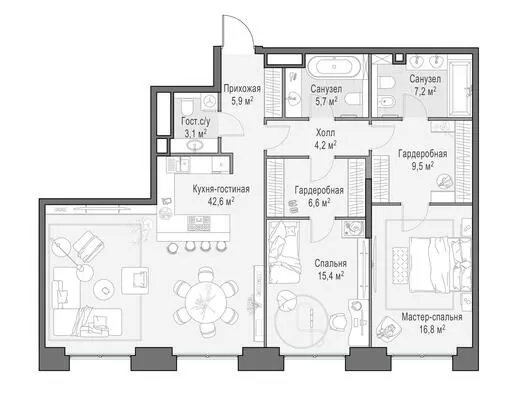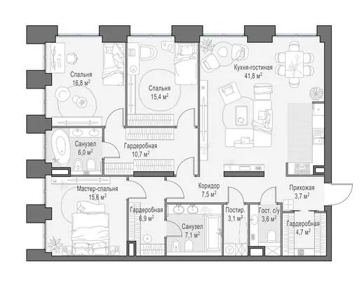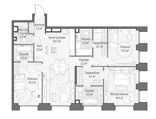 127.6 м² · 4 комнаты · 8/23 этаж · Июнь 2026