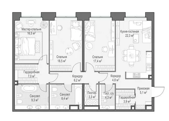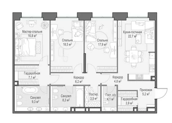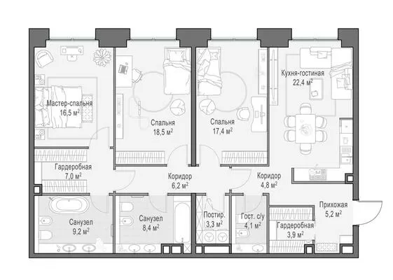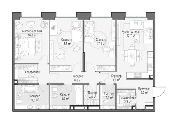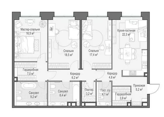 117.7 м² · 4 комнаты · 18/23 этаж · Июнь 2026