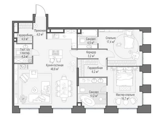 117.7 м² · 4 комнаты · 21/23 этаж · Июнь 2026
