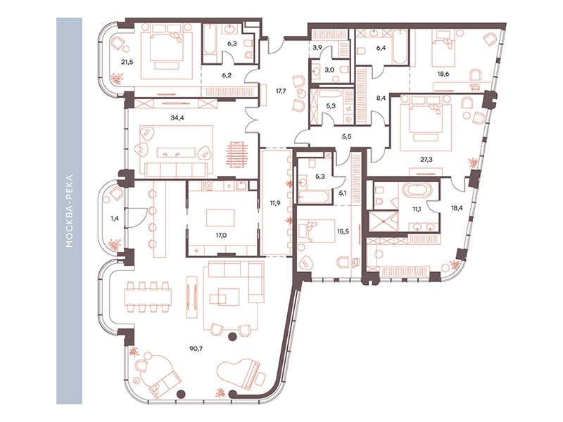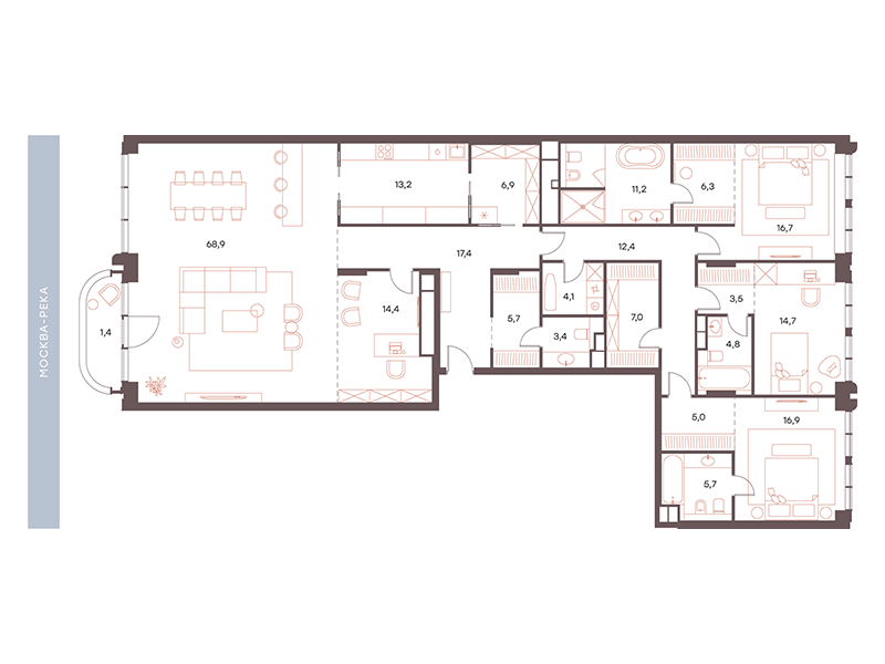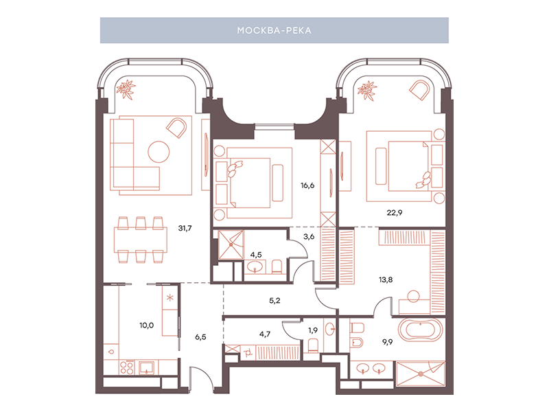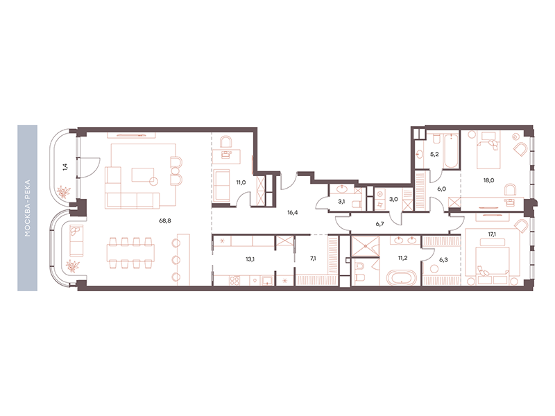 Панорамные окна в пол не только наполняют пространства светом, но и становятся рамкой для постоянно меняющихся видов на реку и парк. Внутри резидентам предлагается 23 вида продуманных планировок. Особое место занимают пентхаусы с высотой потолков 4,05 метра и предусмотренным местом для установки дровяного камина. Все апартаменты сдаются в формате shell&core премиум с готовыми коммуникациями, предоставляя полную свободу для воплощения индивидуального дизайна.