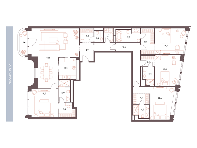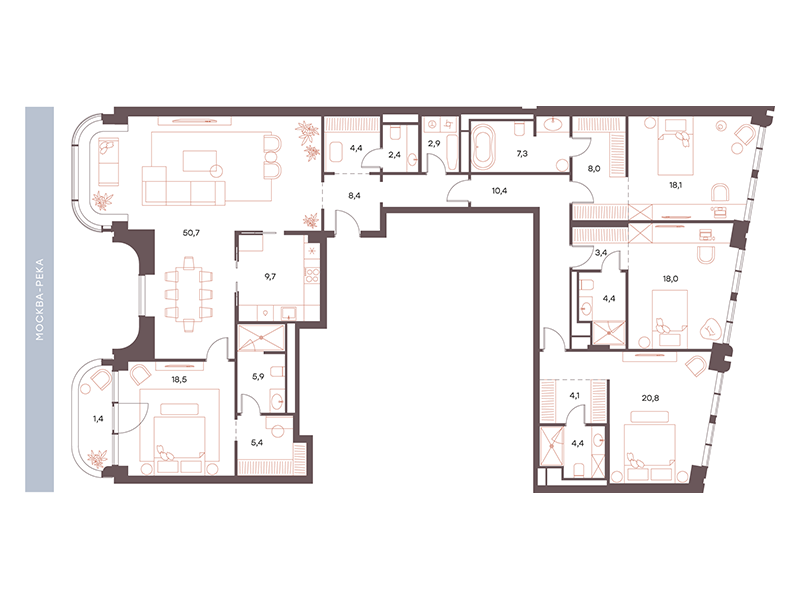 Локация сочетает уединенность набережной с феноменальной транспортной доступностью в самом центре города. Дорога на автомобиле до Третьего транспортного кольца занимает всего 2 минуты, до Садового кольца — 5 минут. В пешей доступности находятся три станции: метро «Спортивная», «Фрунзенская» и станция Московского центрального кольца «Лужники». Резиденция предлагает эксклюзивный формат: всего 61 апартамент в коллекции, что обеспечивает камерную атмосферу и высочайший уровень приватности и сервиса для своих жителей.