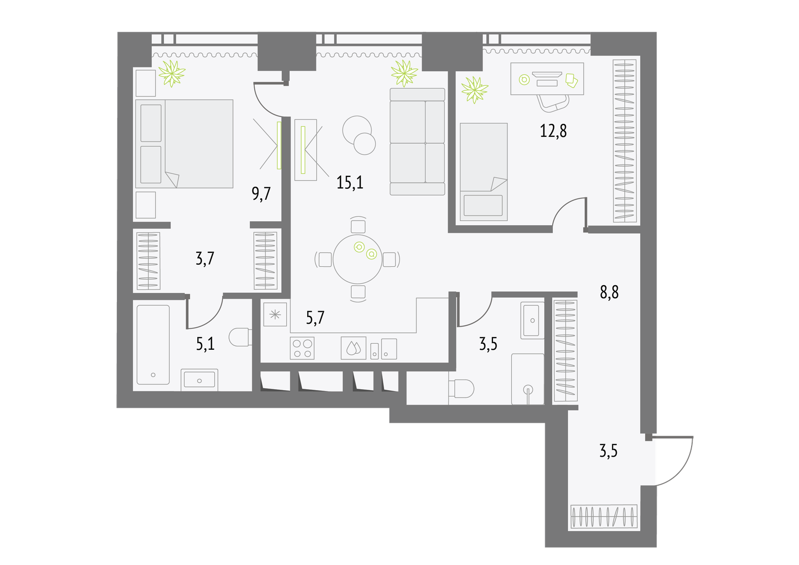Стартовали скидки 15% на готовые квартиры с отделкой. Теперь купить однокомнатную квартиру 44 кв. м можно с выгодой до 1,7 млн рублей.