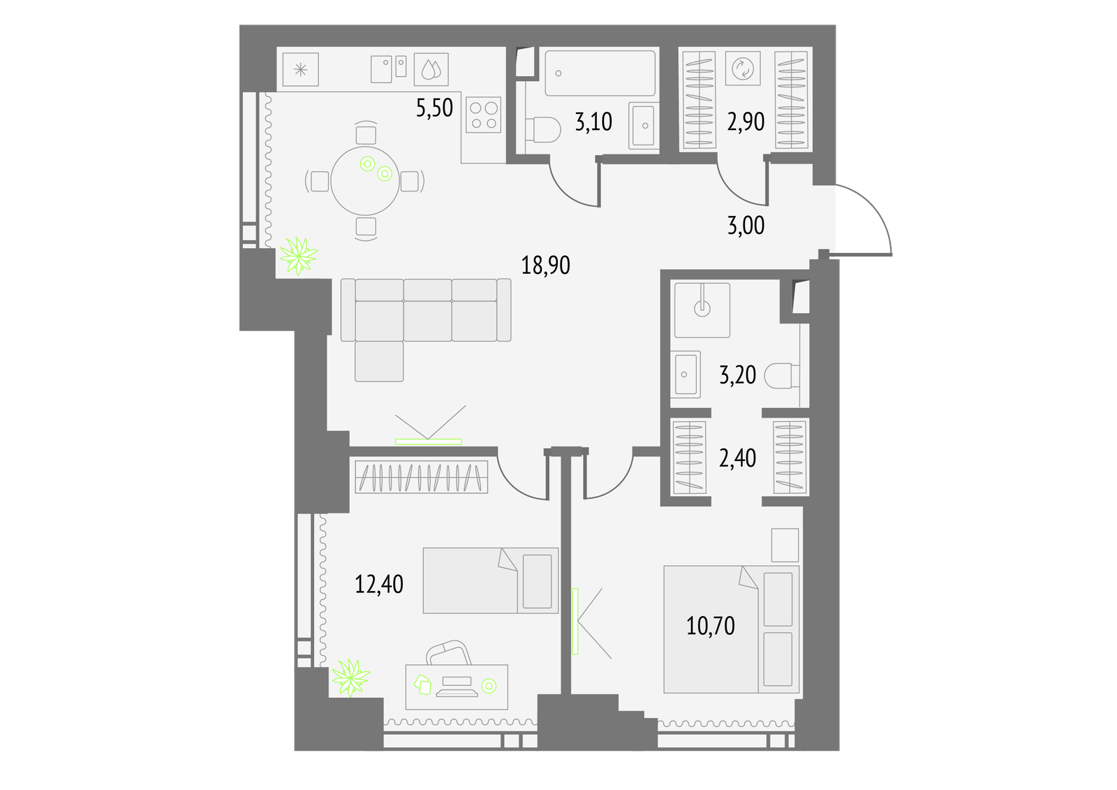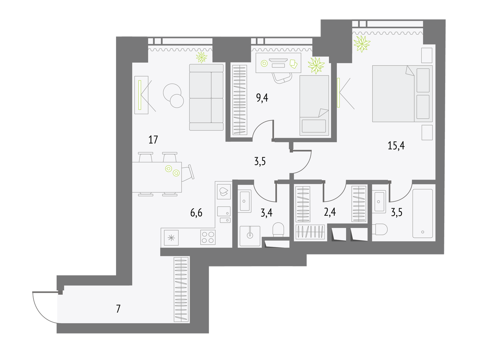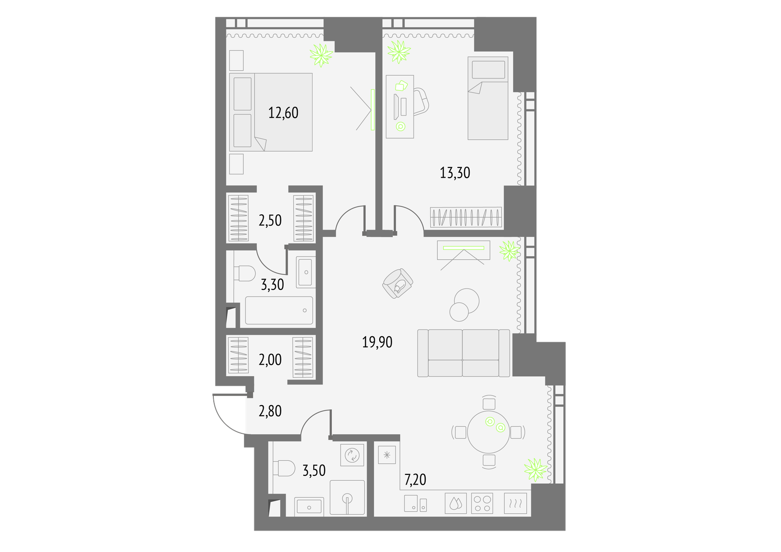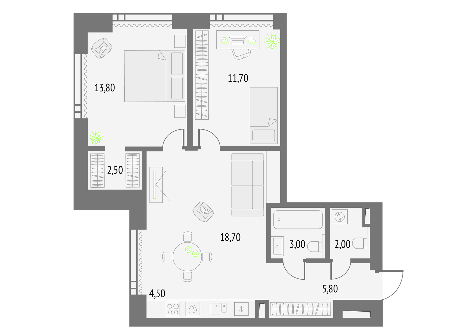 68 м² · 2 комнаты · 4/56 этаж · Сентябрь 2026