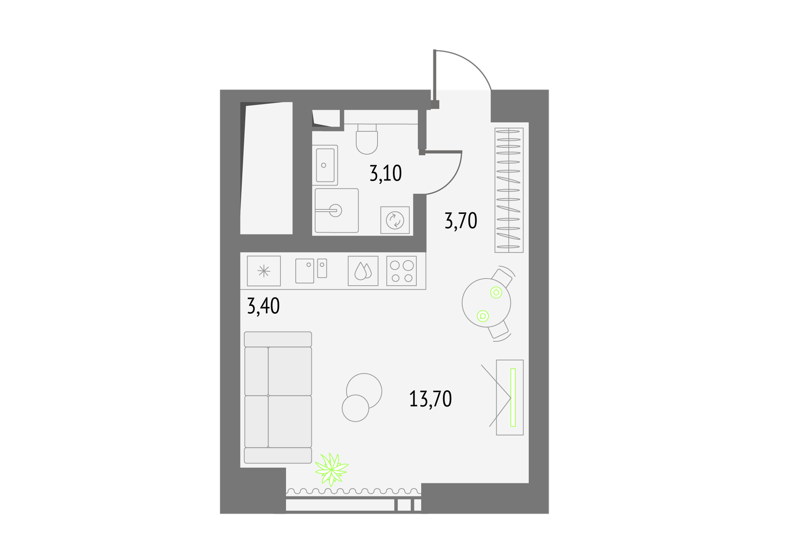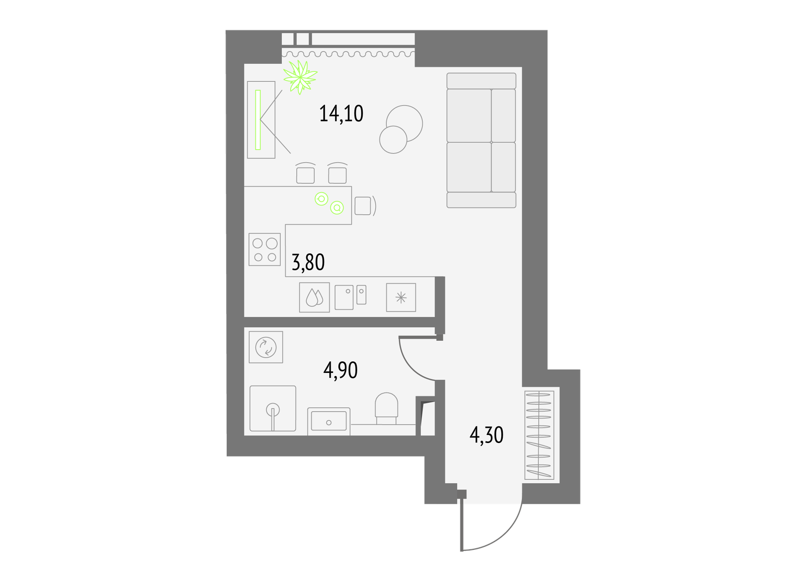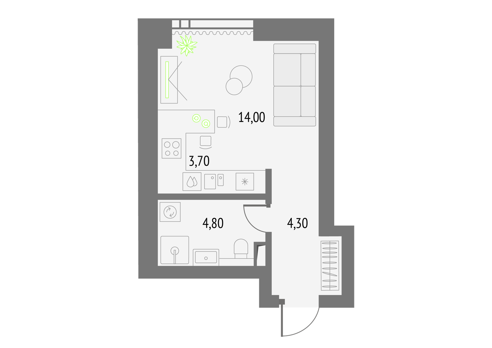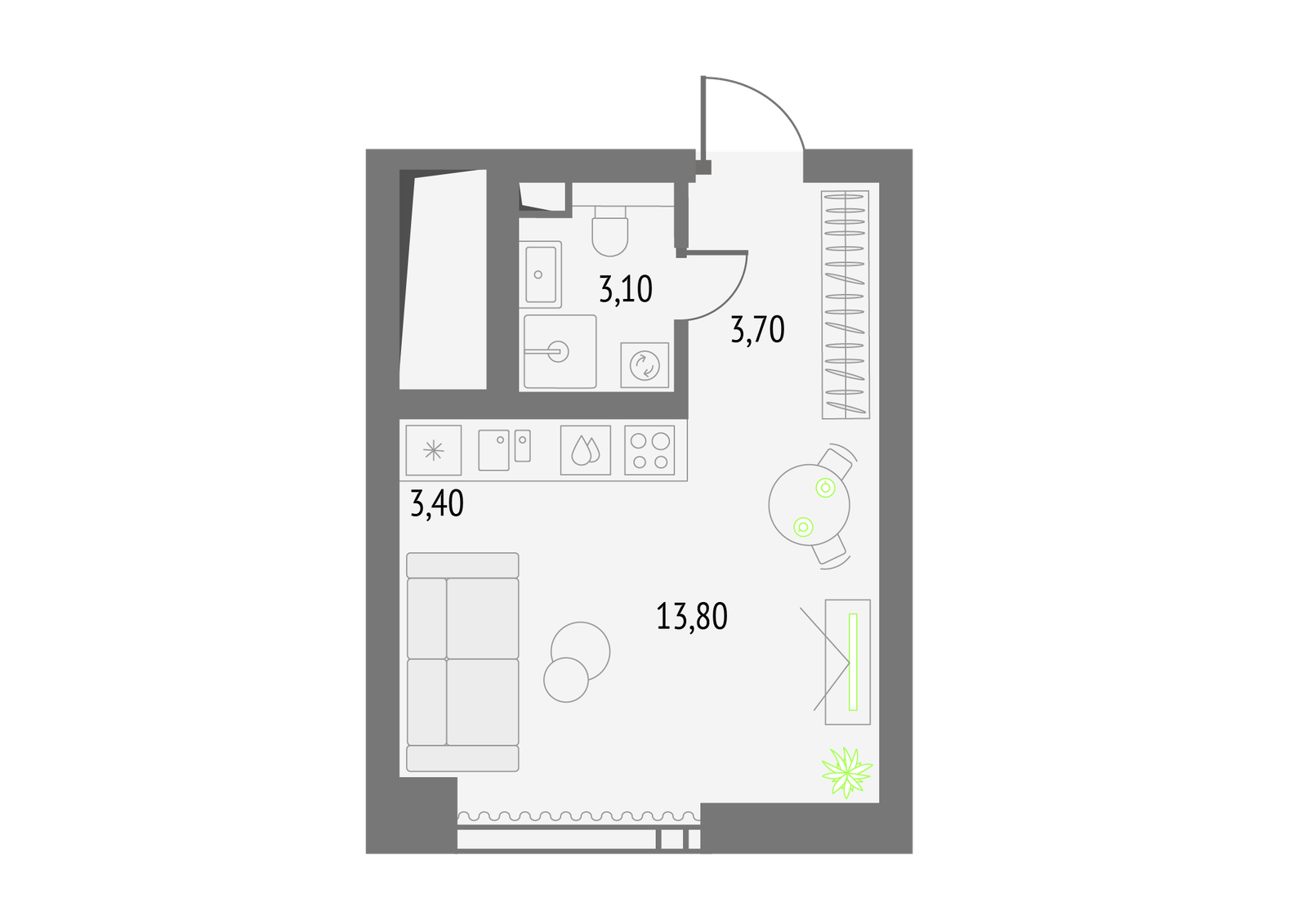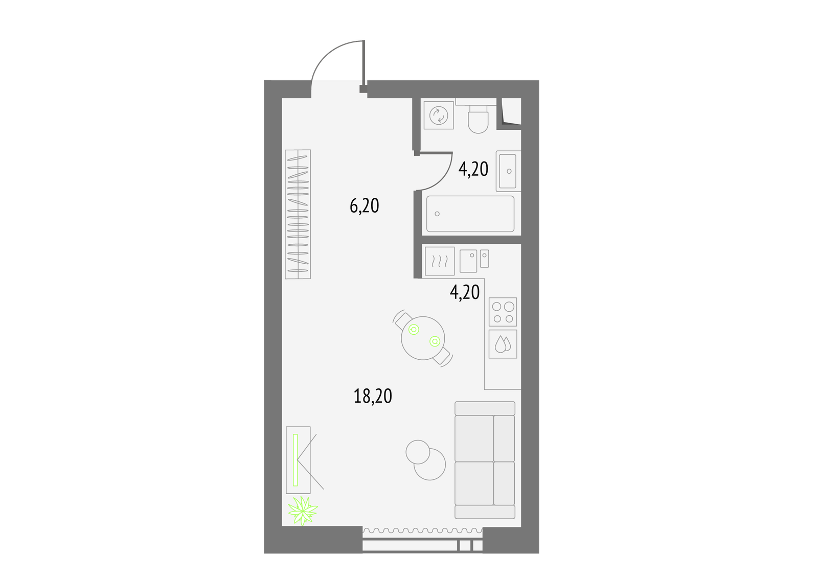 28 м² · 1 комната · 20/56 этаж · Сентябрь 2026