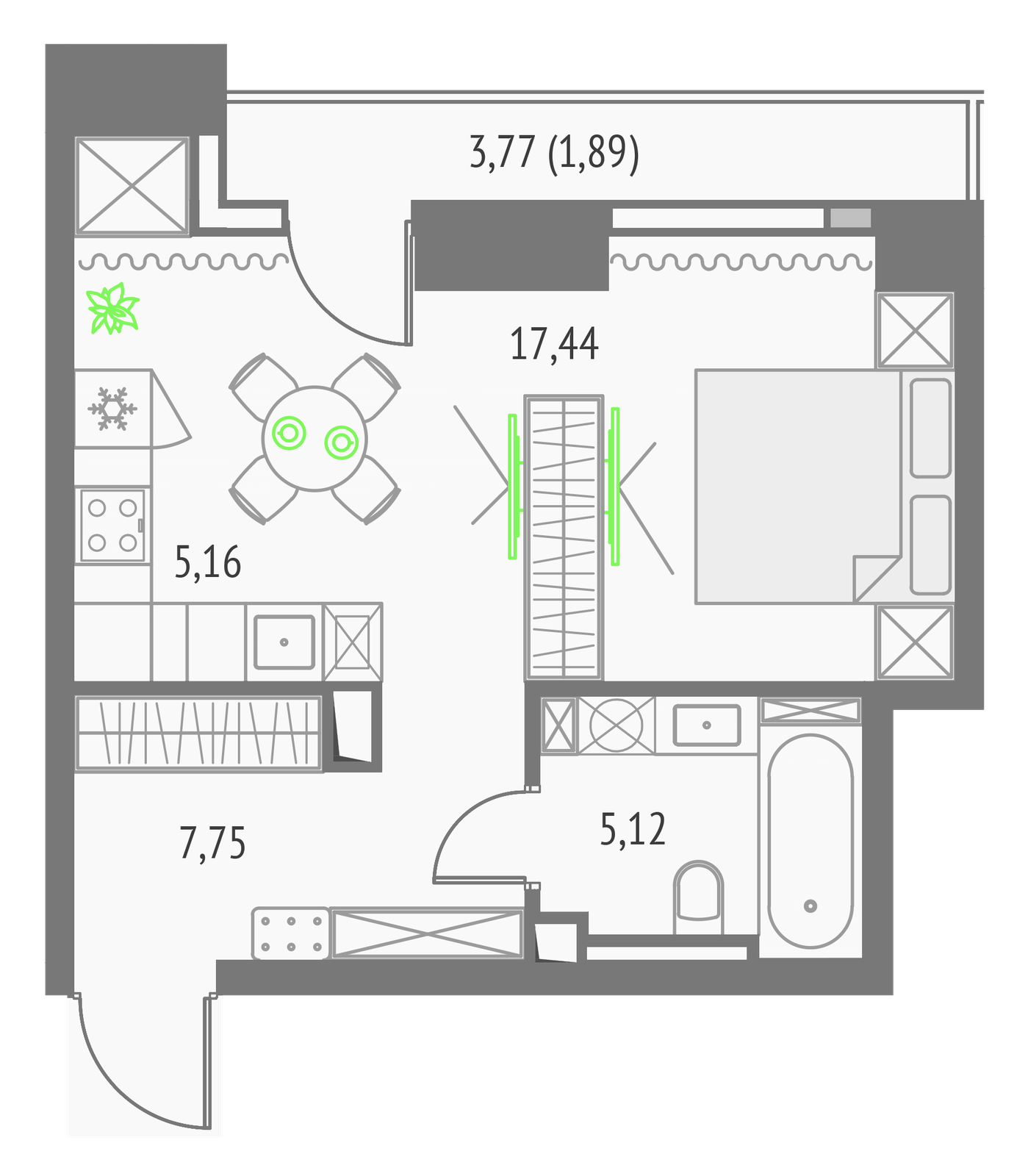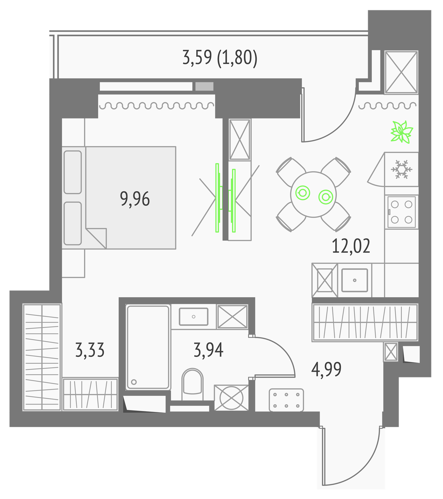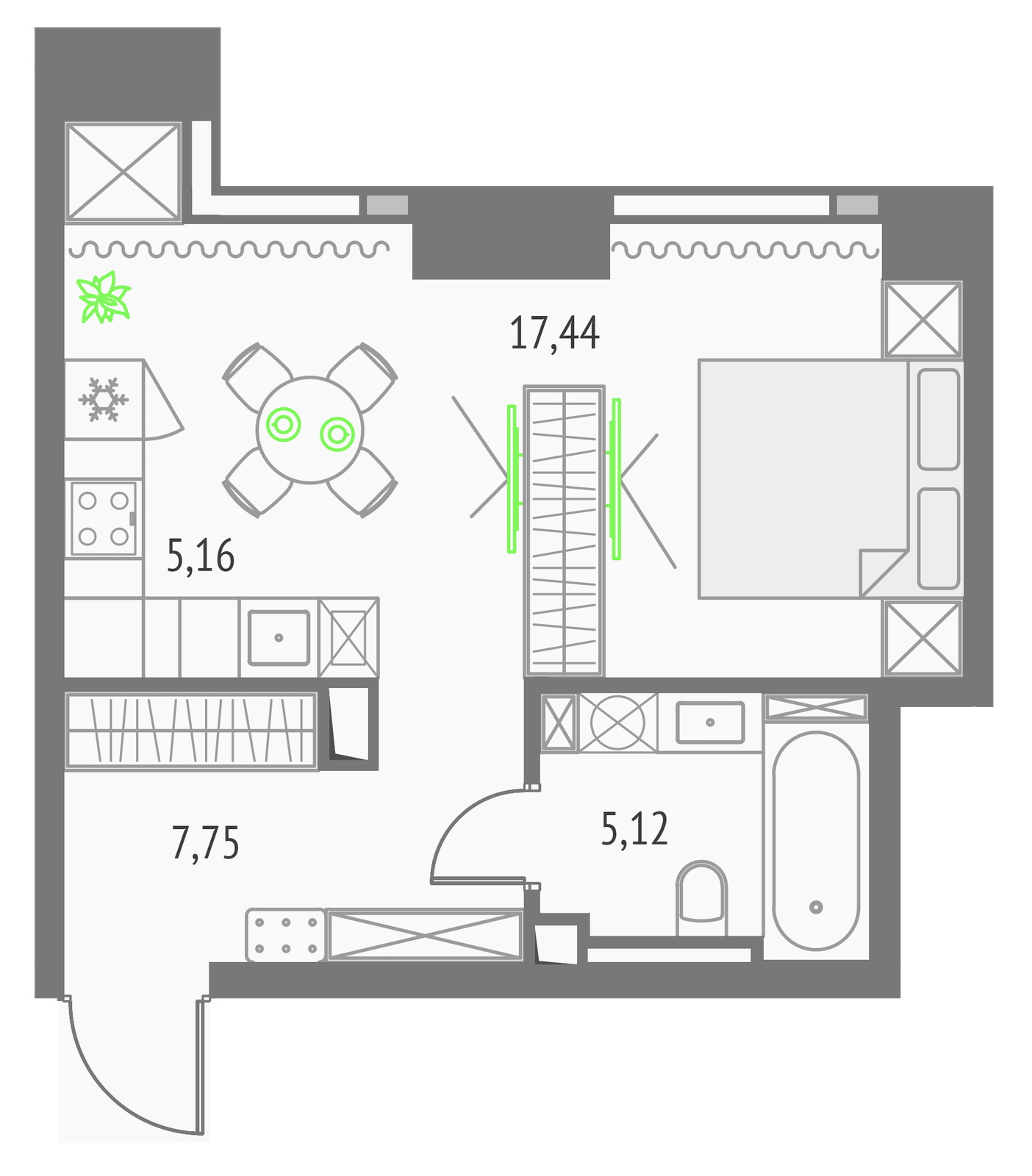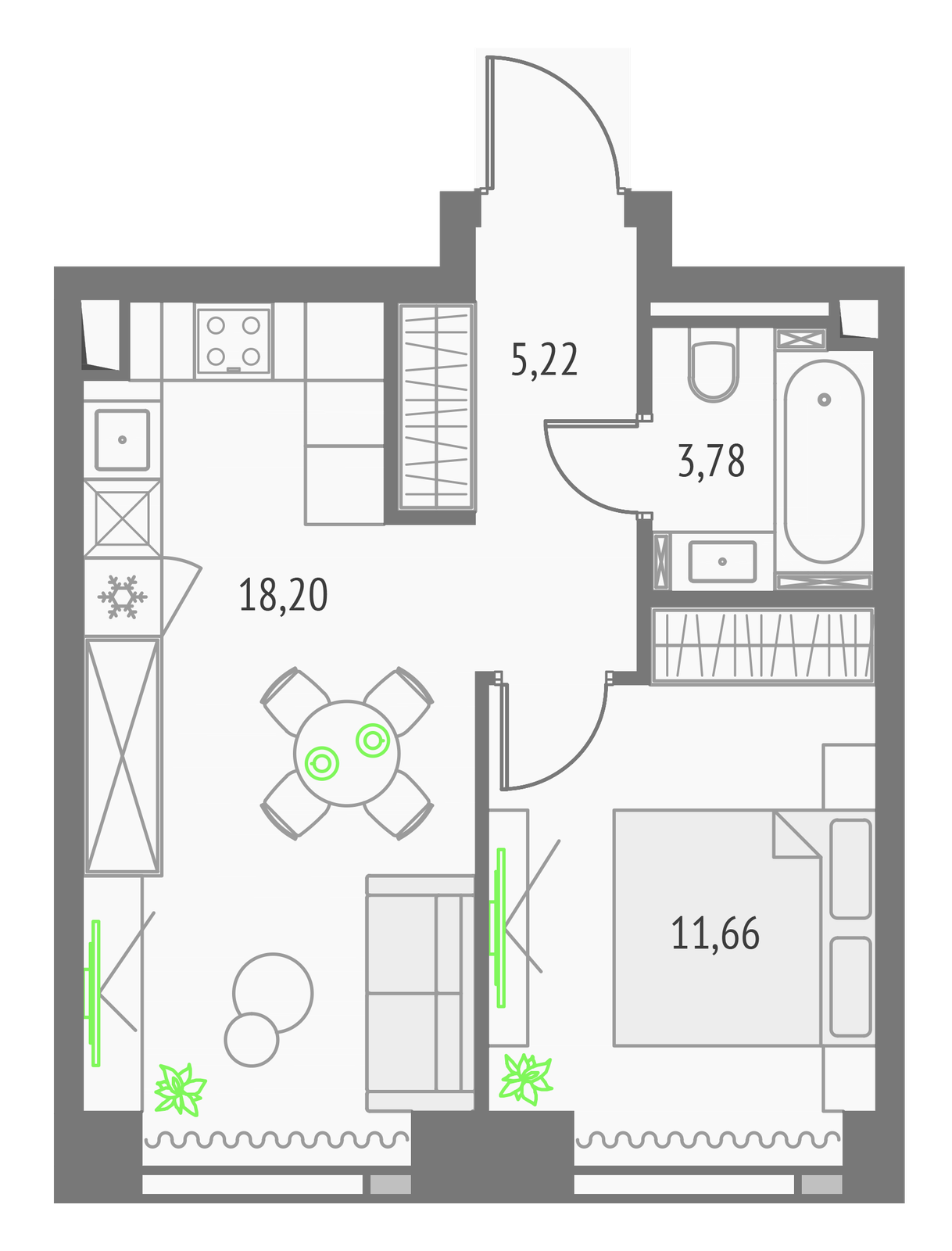 34.24 м² · 1 комната · 22/45 этаж · Июнь 2027