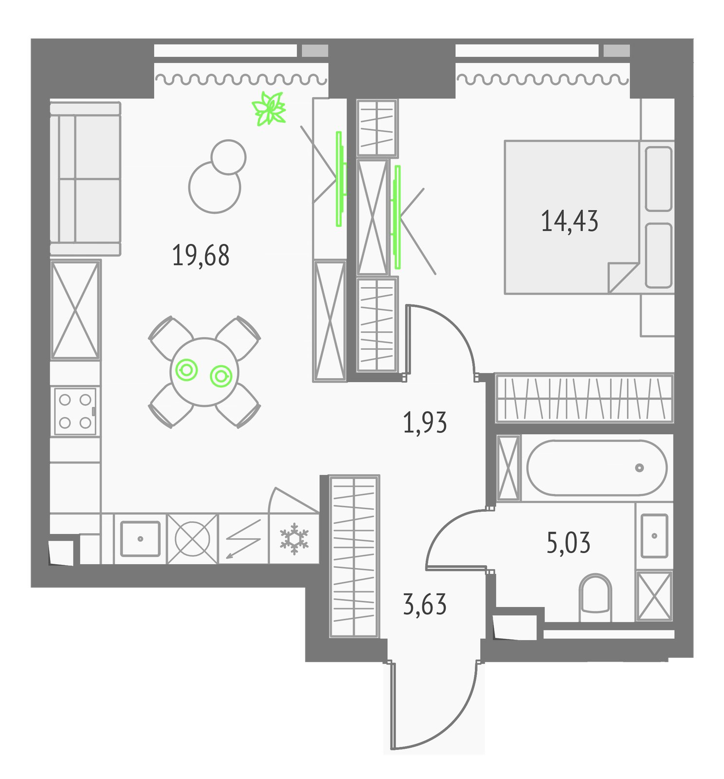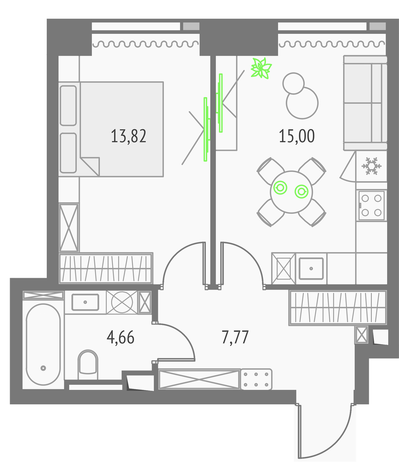 Стартовали скидки 15% на готовые квартиры с отделкой. Теперь купить однокомнатную квартиру 44 кв. м можно с выгодой до 1,7 млн рублей.