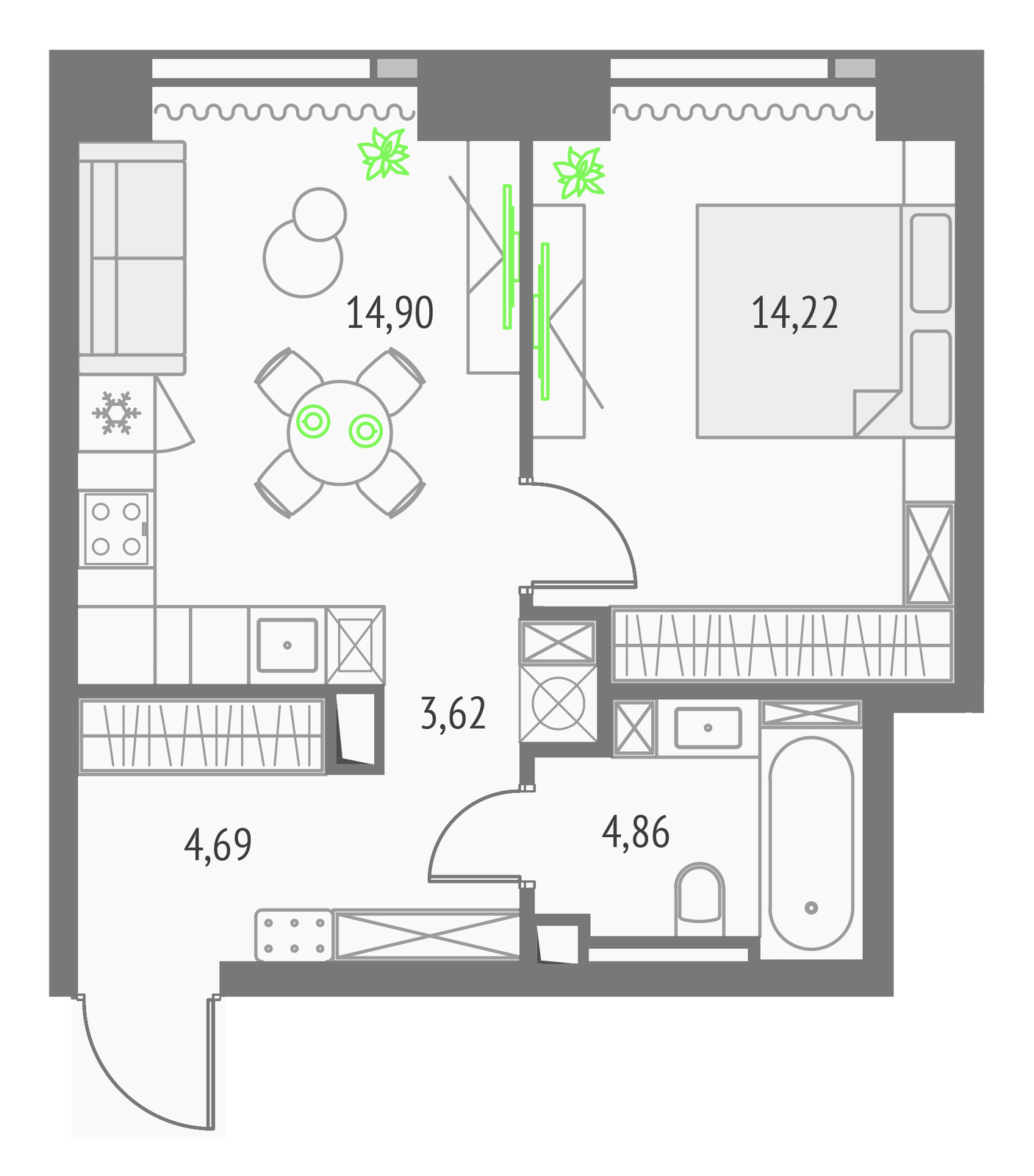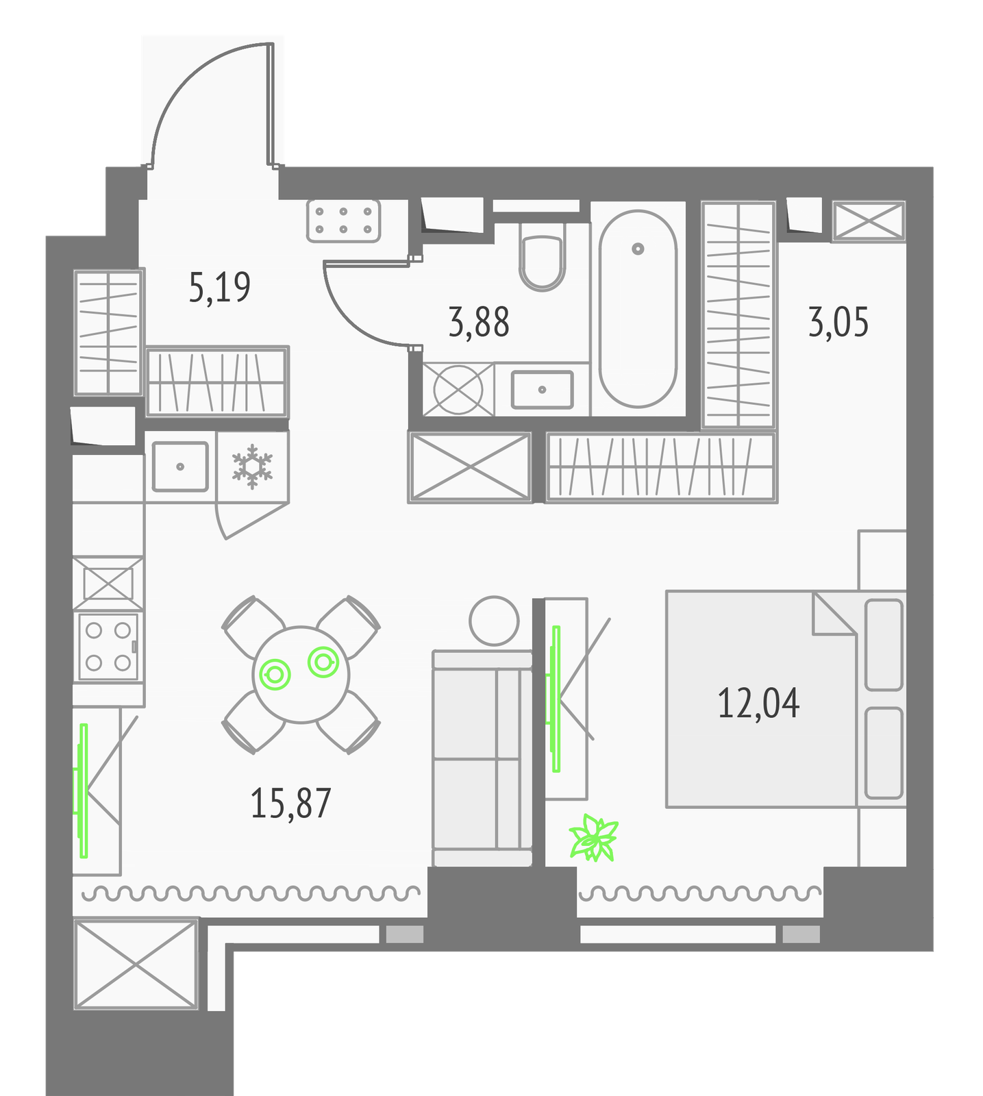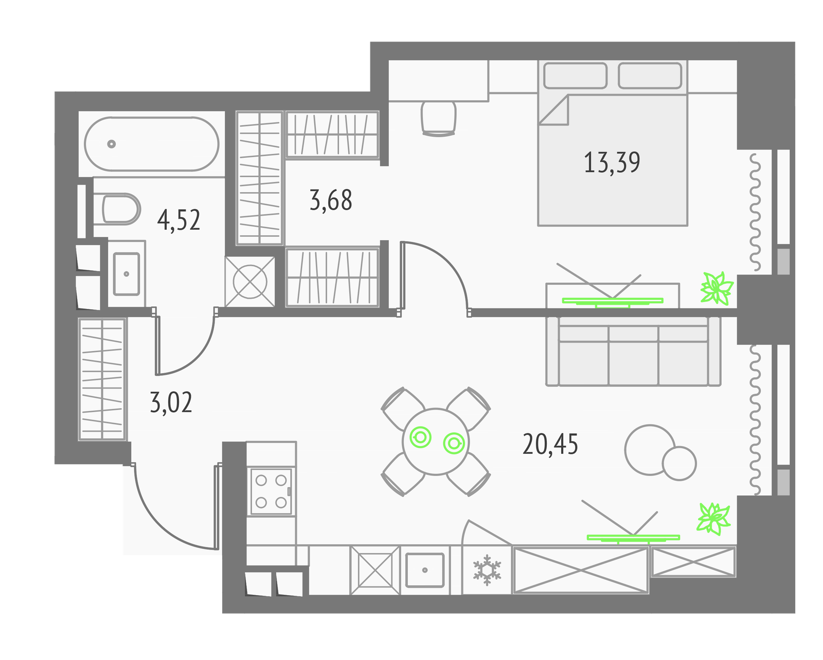 38.86 м² · 1 комната · 6/45 этаж · Июнь 2027