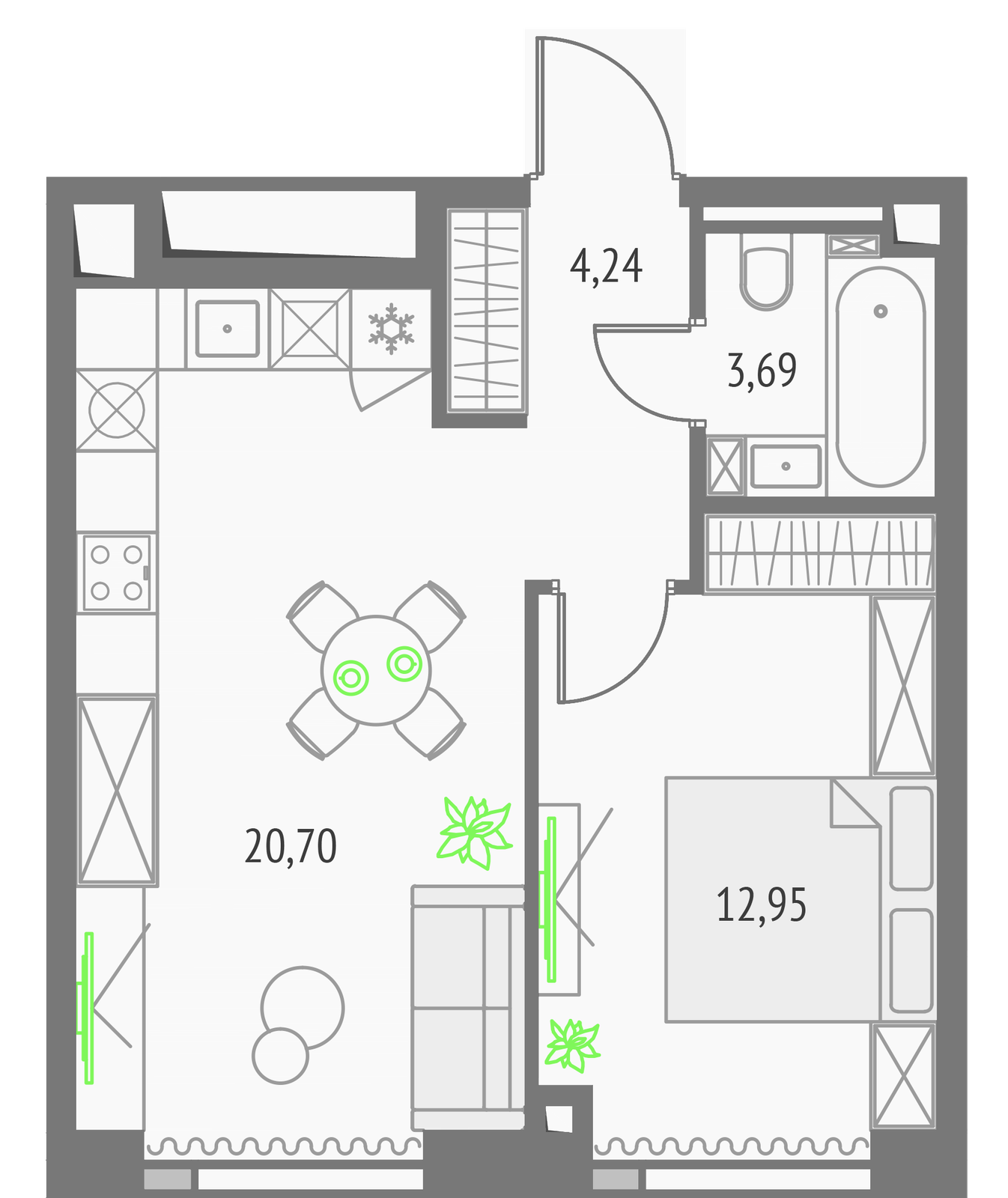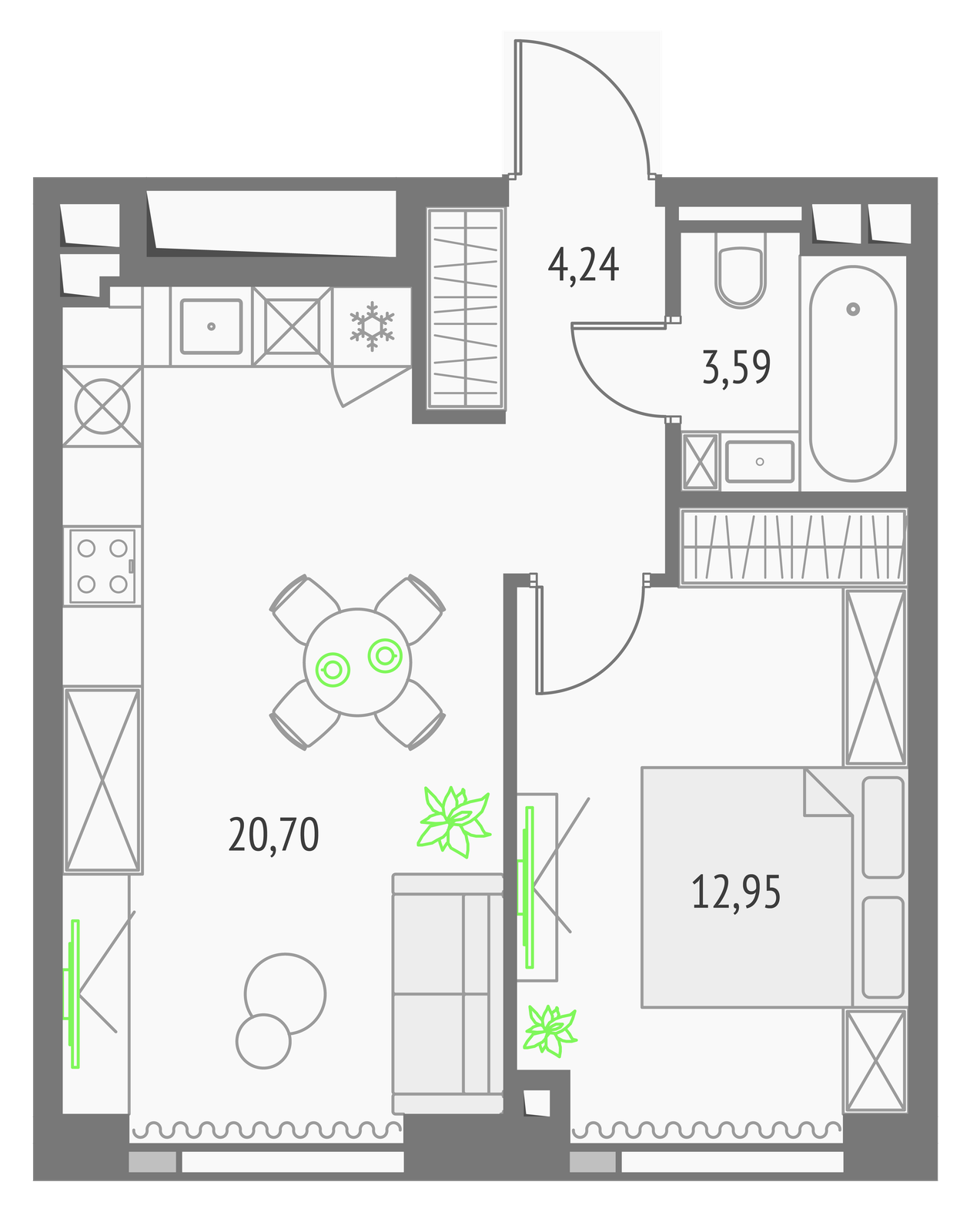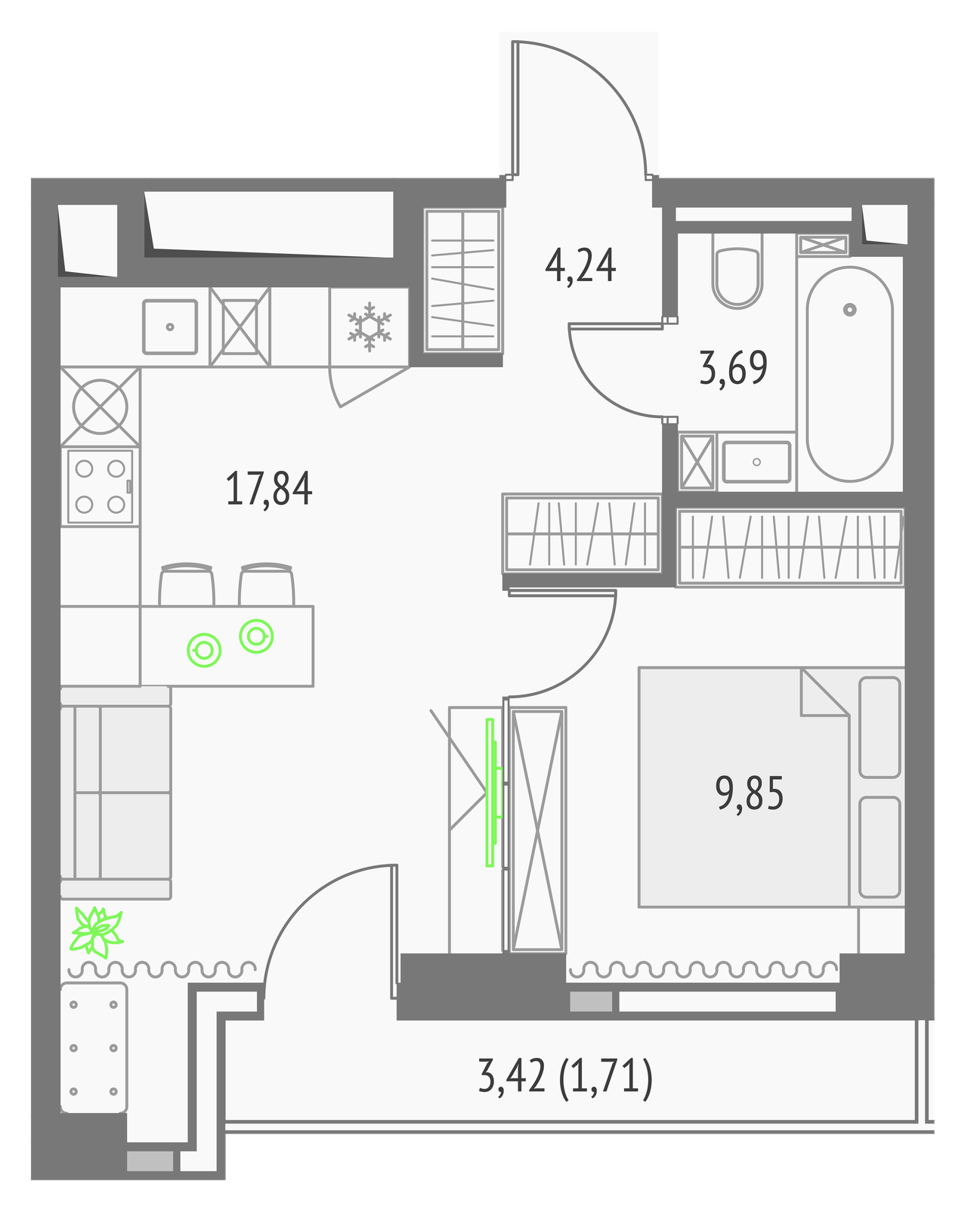 41.68 м² · 1 комната · 3/19 этаж · Июнь 2027