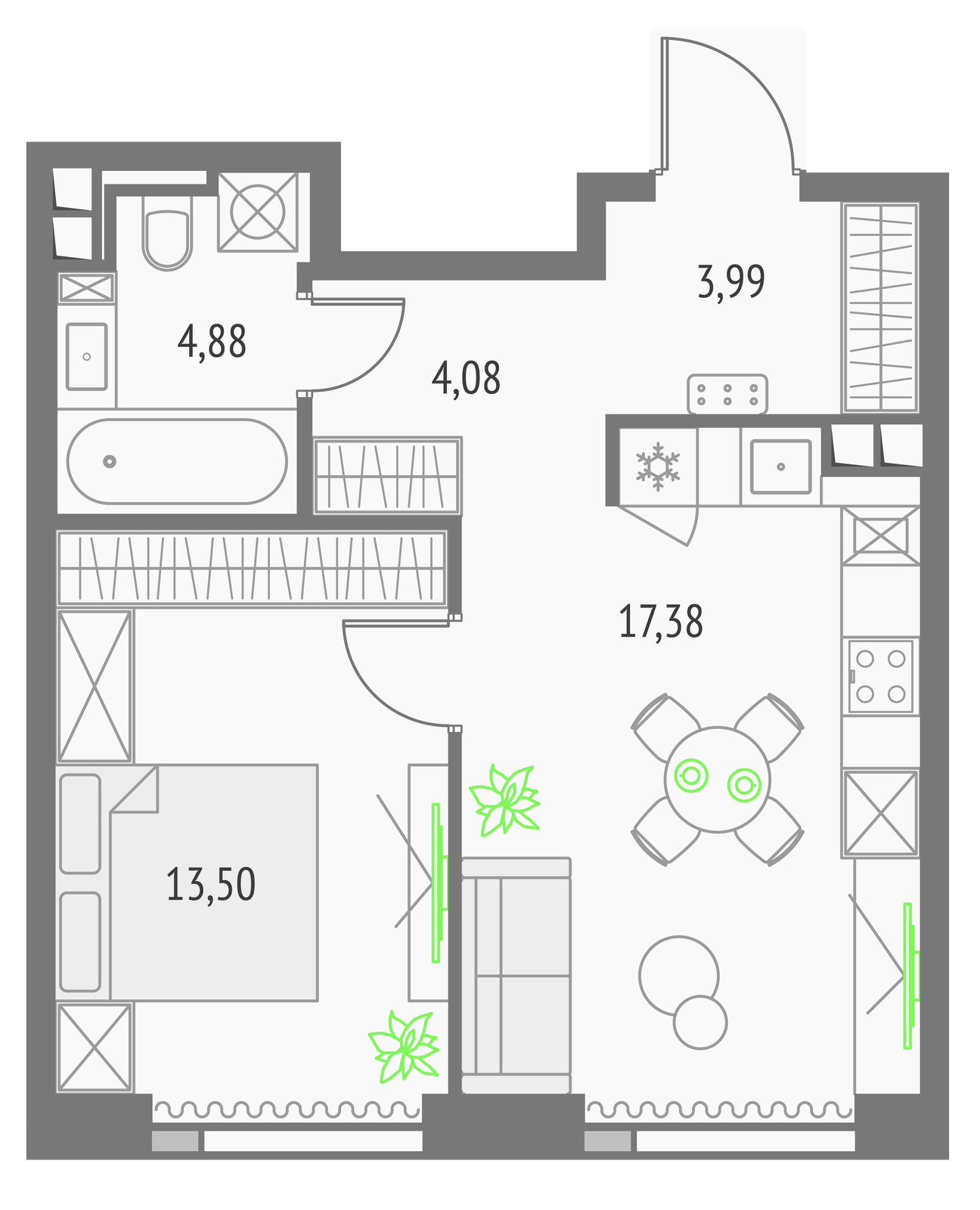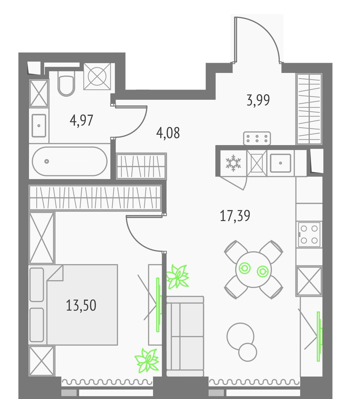 Стартовали скидки 15% на готовые квартиры с отделкой. Теперь купить однокомнатную квартиру 44 кв. м можно с выгодой до 1,7 млн рублей.