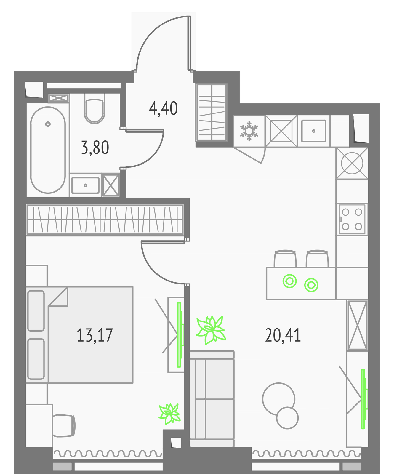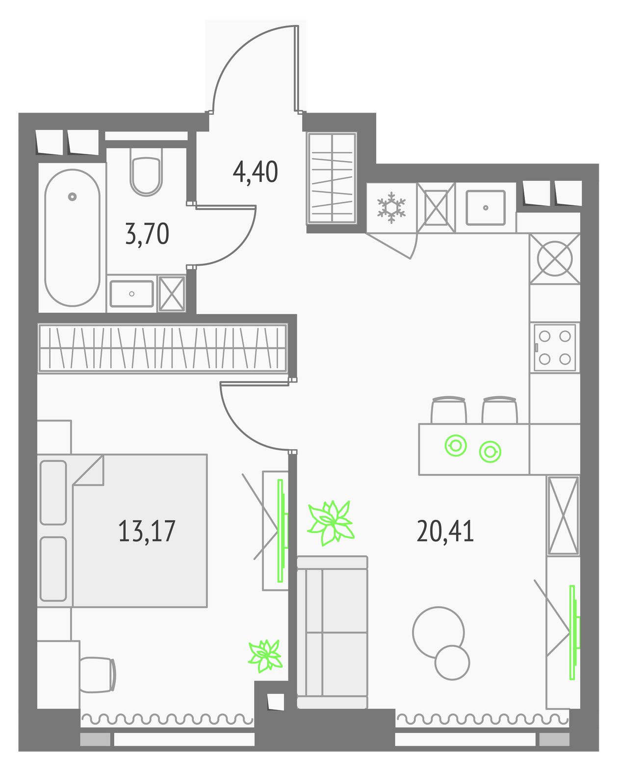 41.48 м² · 1 комната · 3/19 этаж · Июнь 2027