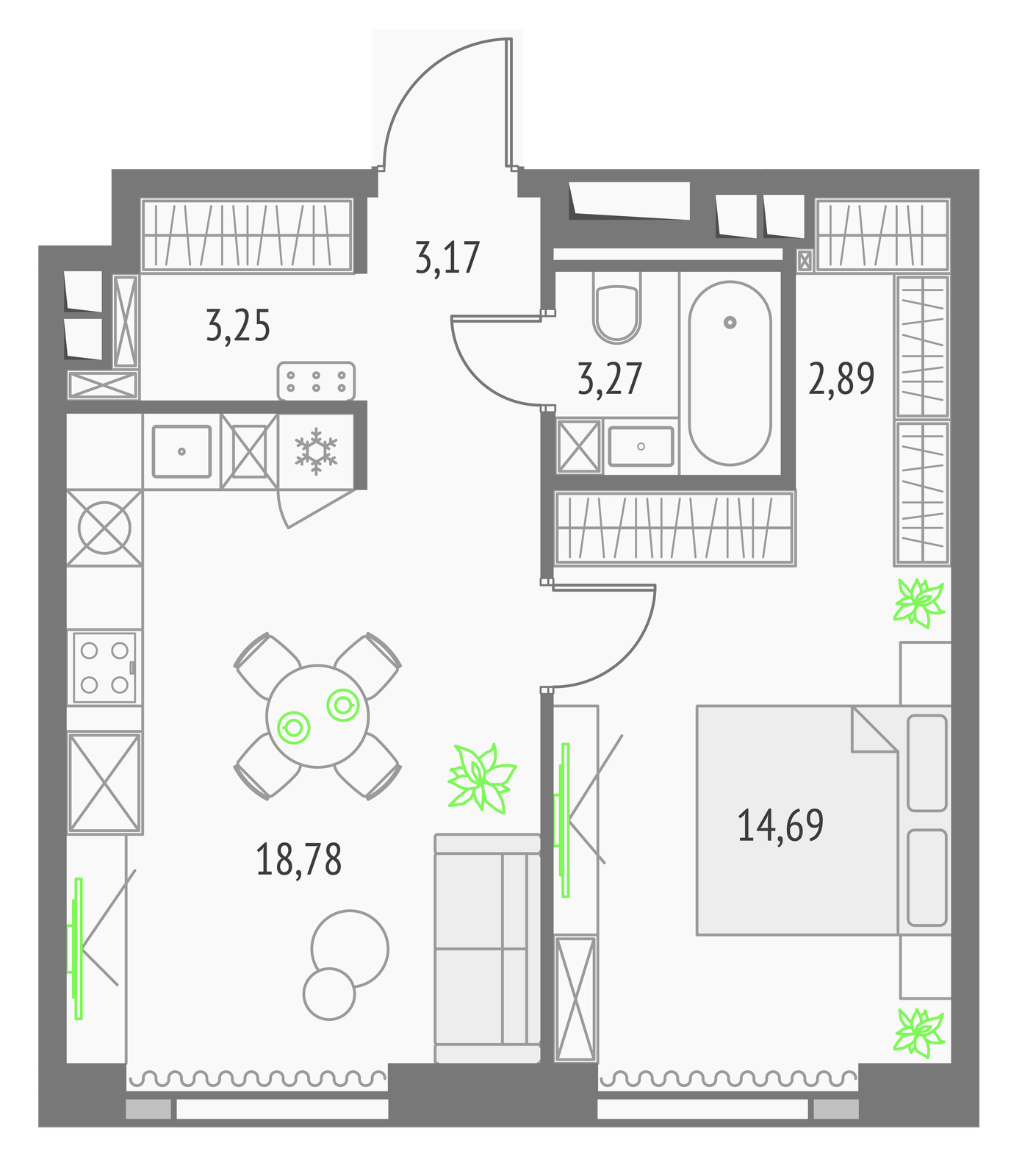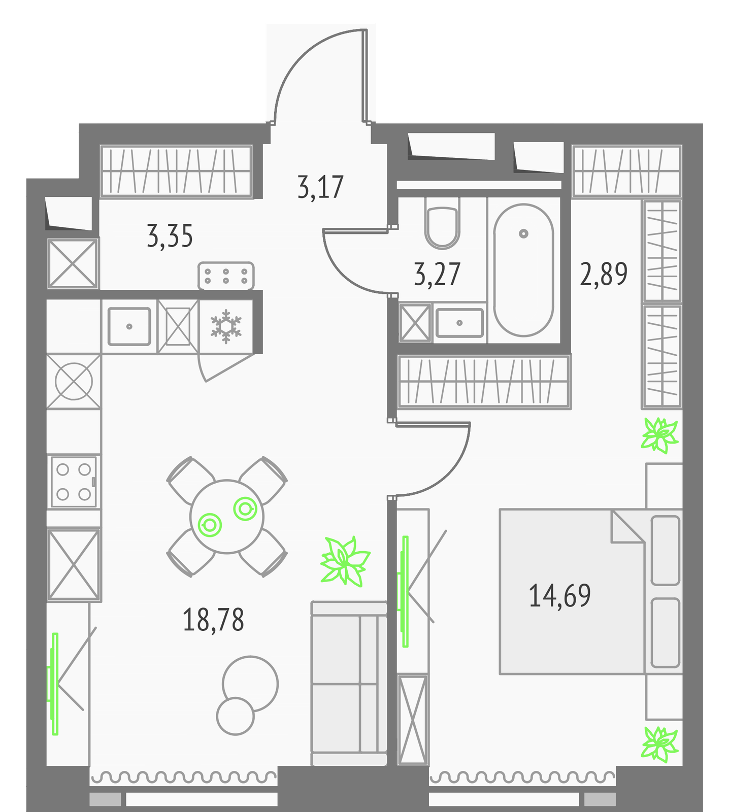 46.05 м² · 1 комната · 3/19 этаж · Июнь 2027