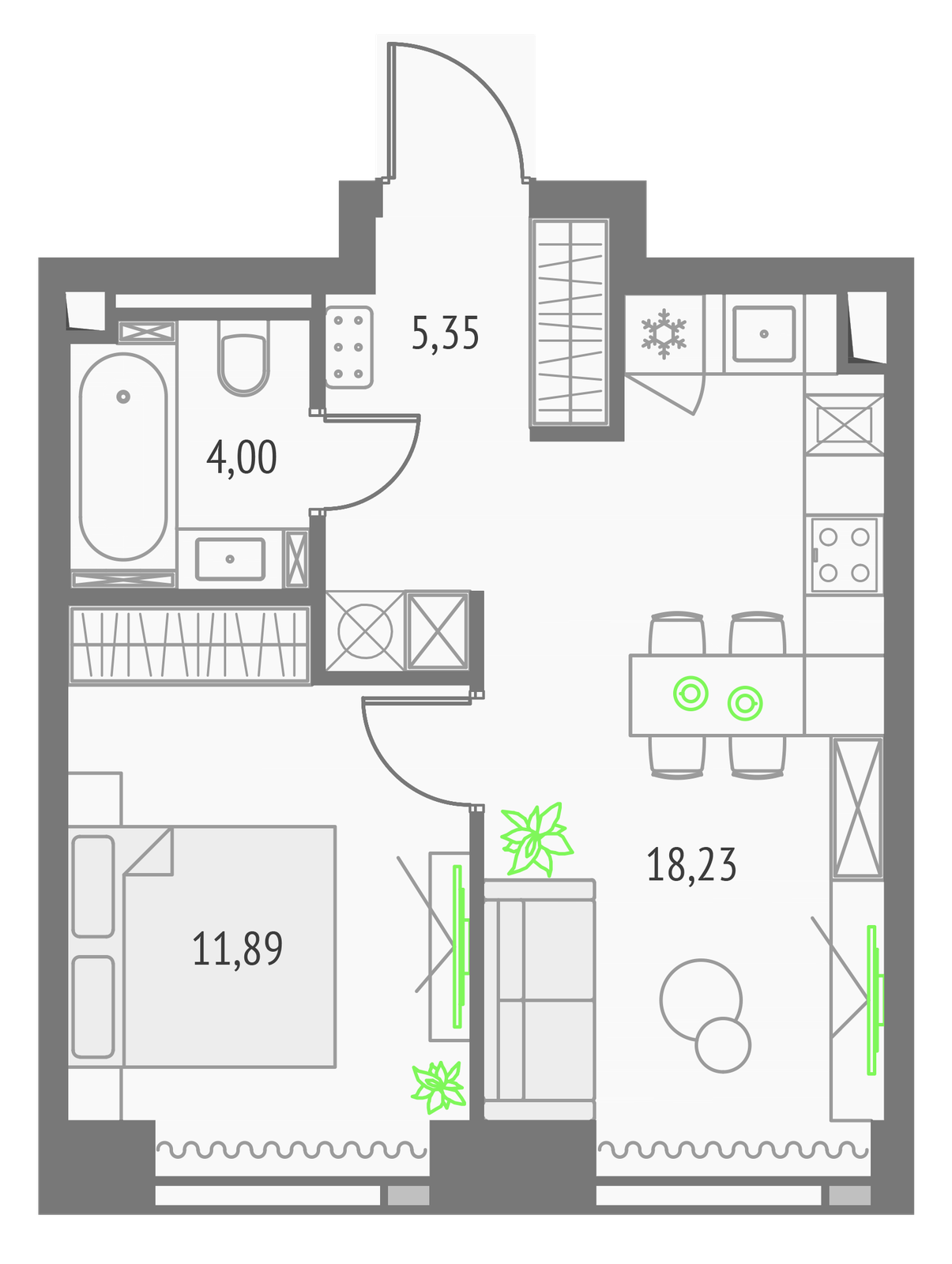 36.4 м² · 1 комната · 22/45 этаж · Июнь 2027