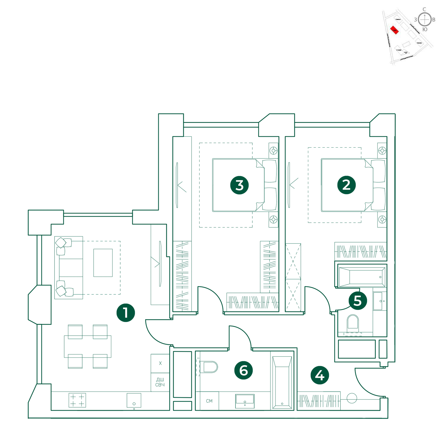 | 5 | Декабрь 2027 | 5 | 2 | 6 | 6 | 3 | 61 | 29 829 000 | без отделки | 6 | |||