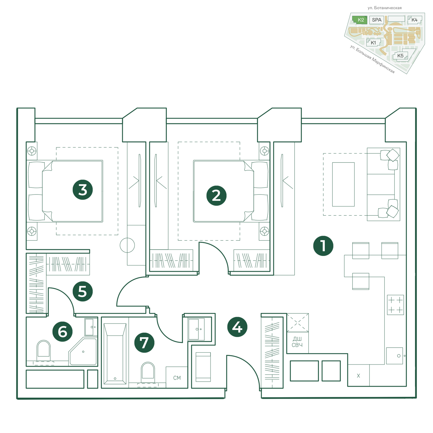 Ключевая особенность ЖК VERY – прямой доступ к природе. Комплекс расположен в непосредственной близости от главного Ботанического сада Москвы. Это идеальный выбор для тех, кто ценит спокойствие, пространство и ежедневные прогулки среди зелени.