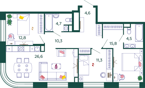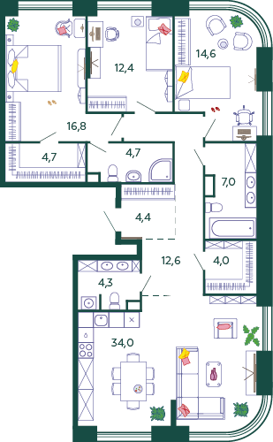 | 10.2 | Декабрь 2024 | 2 | 4 | 4 | 4 | 4 | 123.7 | 45 916 773 | без отделки | ![]() | 4 | ||