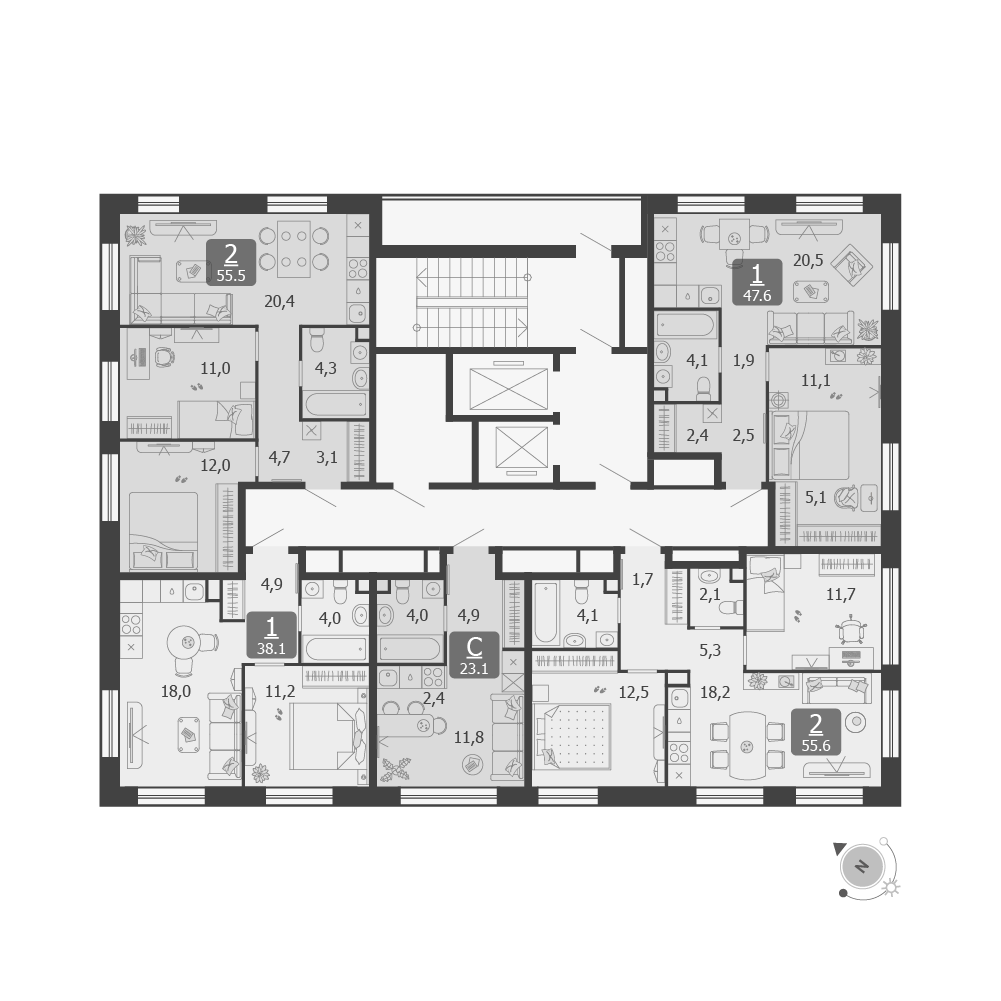Квартал предлагает разнообразные форматы жилой застройки и планировок, чтобы удовлетворить потребности разных поколений – от молодых специалистов до семей с детьми и людей старшего возраста. Это место, где можно выбрать не только квартиру, но и стиль жизни, максимально подходящий именно вам.