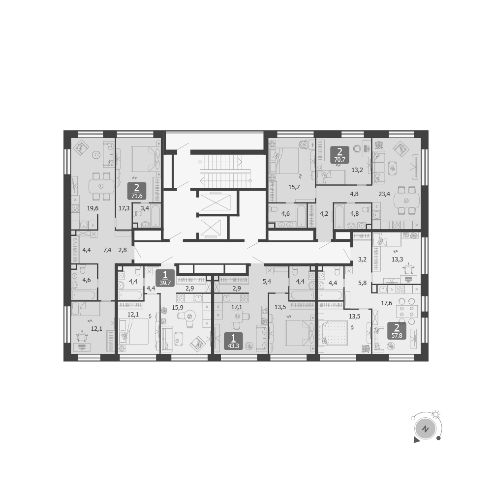 | 8 (III очередь, 5 этап) | Декабрь 2026 | 1 | 2 | 8 | 8 | 2 | 69.6 | 39 956 711 | без отделки | ![]() | 8 | ||