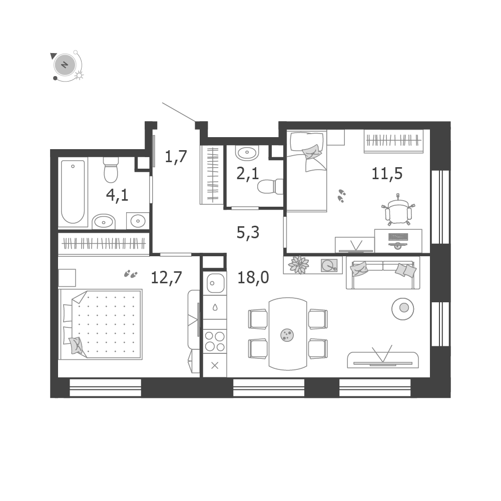 | 7 (III очередь, 3 этап) | Июнь 2028 | 1 | 18 | 2 | 2 | 2 | 53.4 | 35 883 048 | без отделки | ![]() | 2 | ||