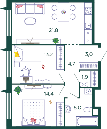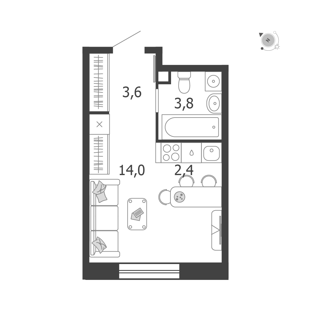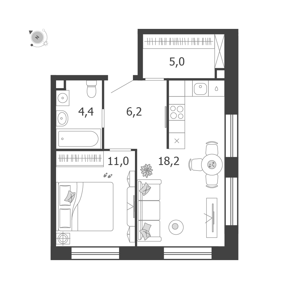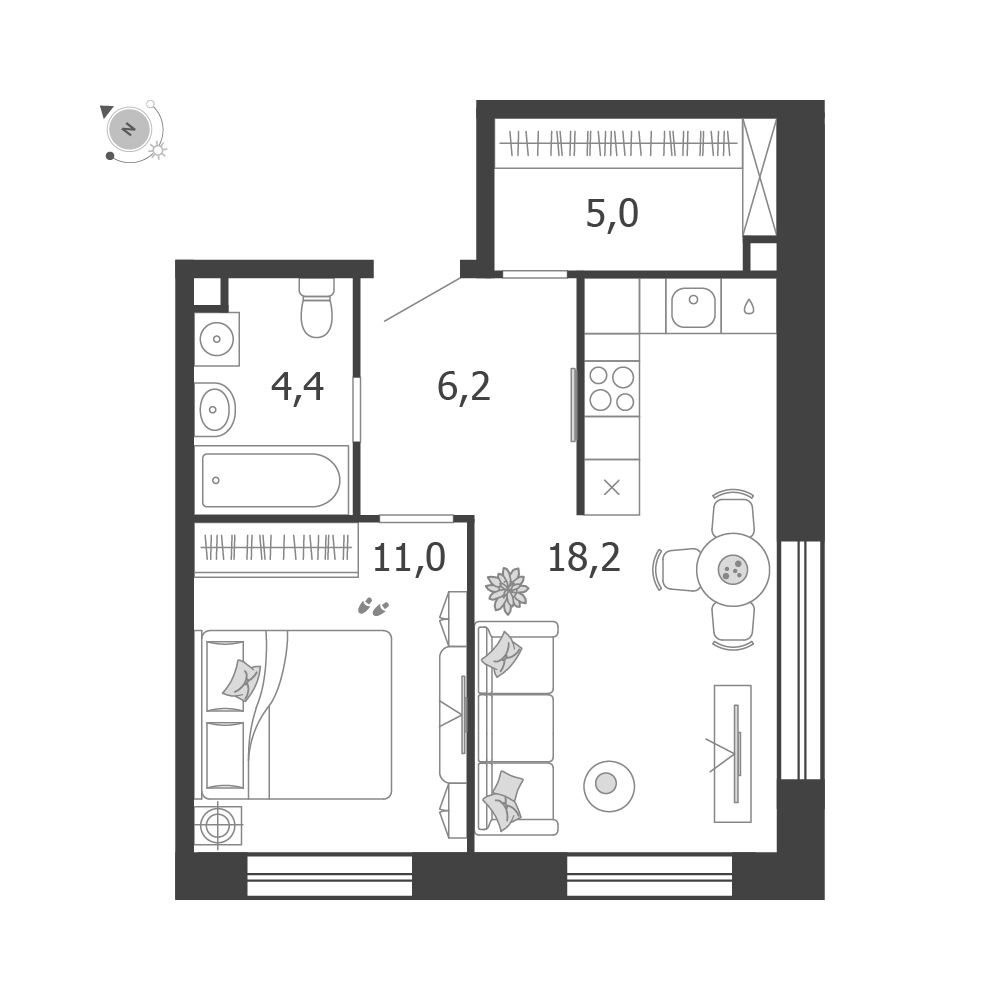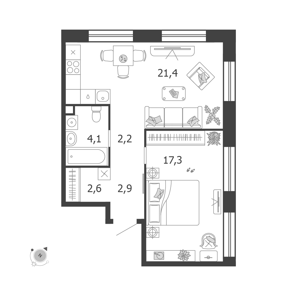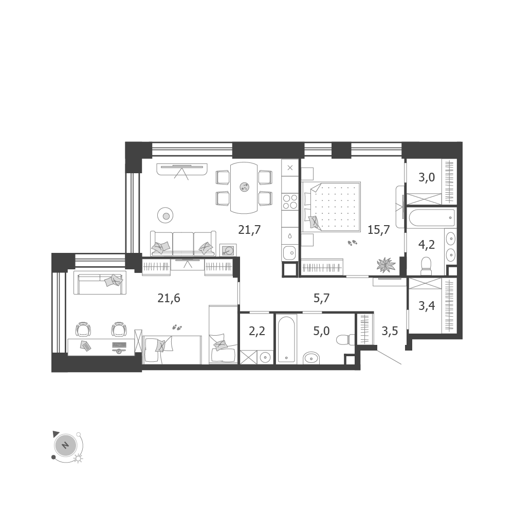 | 3 (III очередь, 2 этап) | Июнь 2028 | 1 | 2 | 2 | 2 | 1 | 42.4 | 25 605 222 | без отделки | ![]() | 2 | ||