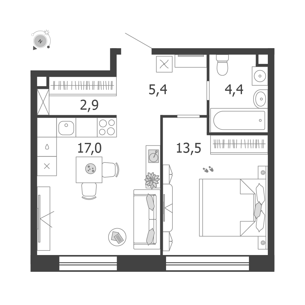 | 9 (III очередь, 5 этап) | Декабрь 2026 | 1 | 17 | 2 | 2 | 2 | 57.4 | 35 170 783 | без отделки | ![]() | 2 | ||