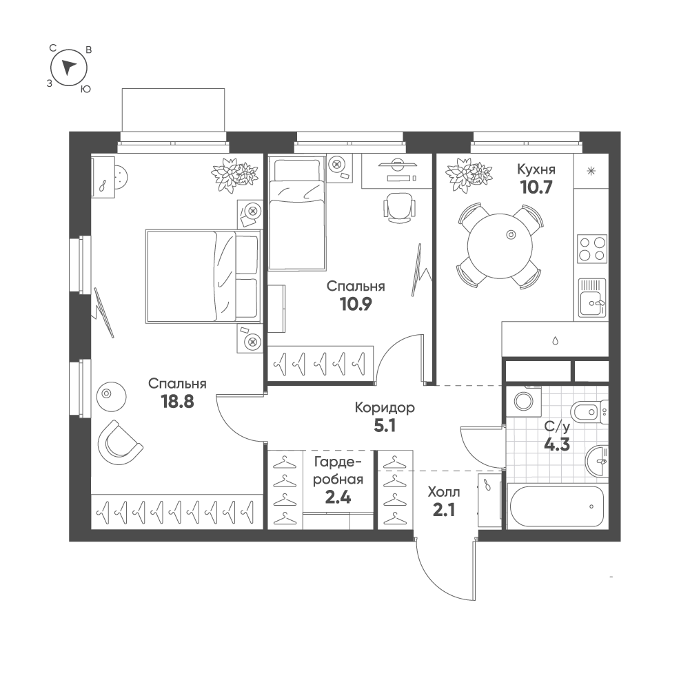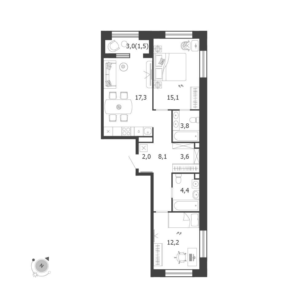 | 3 (III очередь, 2 этап) | Июнь 2028 | 1 | 5 | 8 | 8 | 2 | 54.3 | 31 470 884 | без отделки | ![]() | 8 | ||