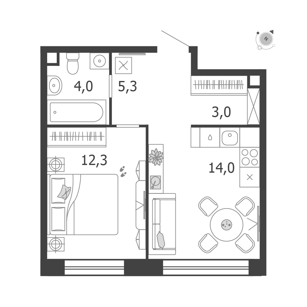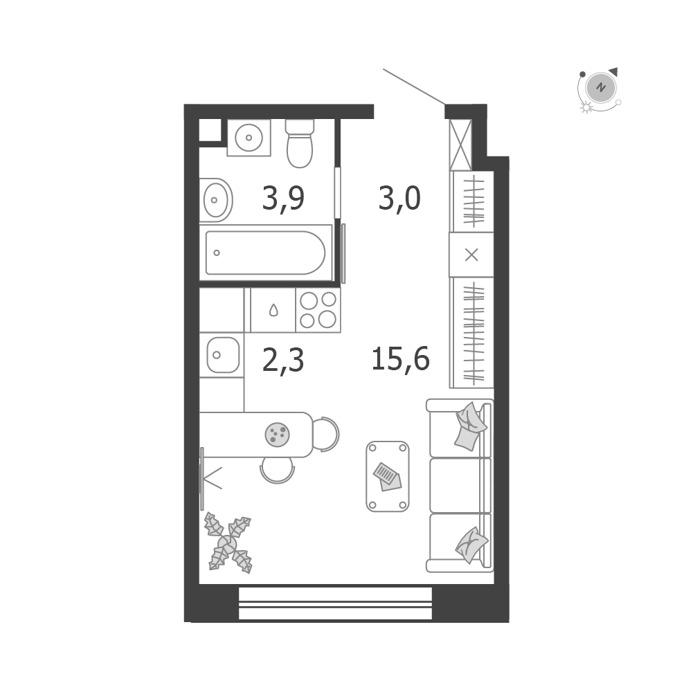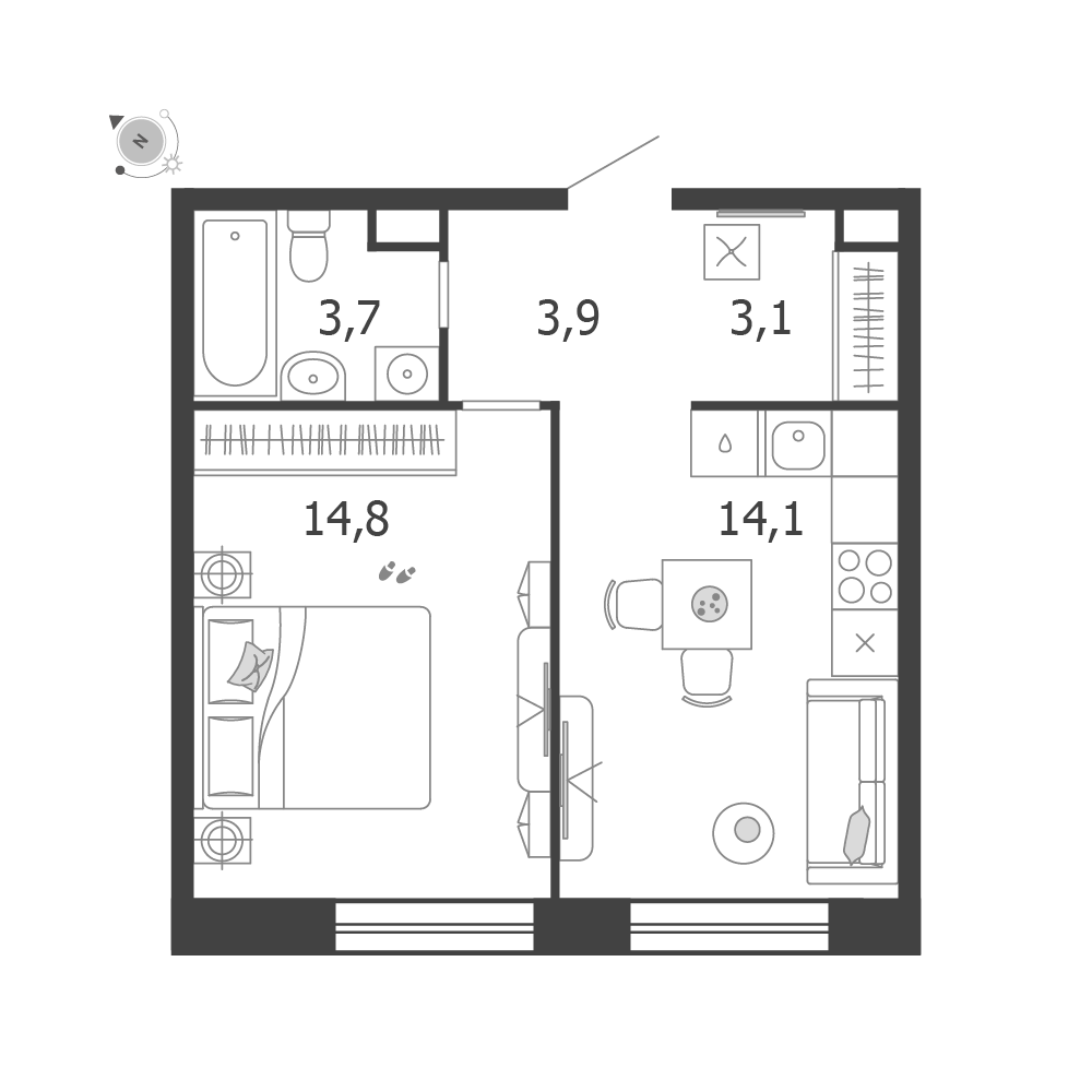 | 1 (III очередь, 2 этап) | Июнь 2028 | 1 | 2 | 3 | 3 | 1 | 42.3 | 24 852 437 | без отделки | ![]() | 3 | ||