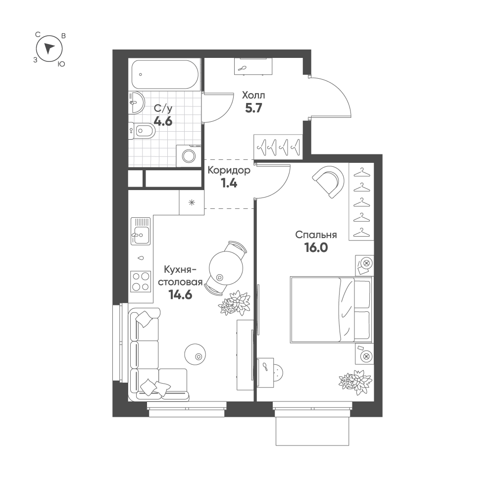 | 6.1 (II очередь, 1 этап) | Декабрь 2025 | 1 | 4 | 7 | 7 | 1 | 59.7 | 33 122 594 | без отделки | ![]() | 7 |