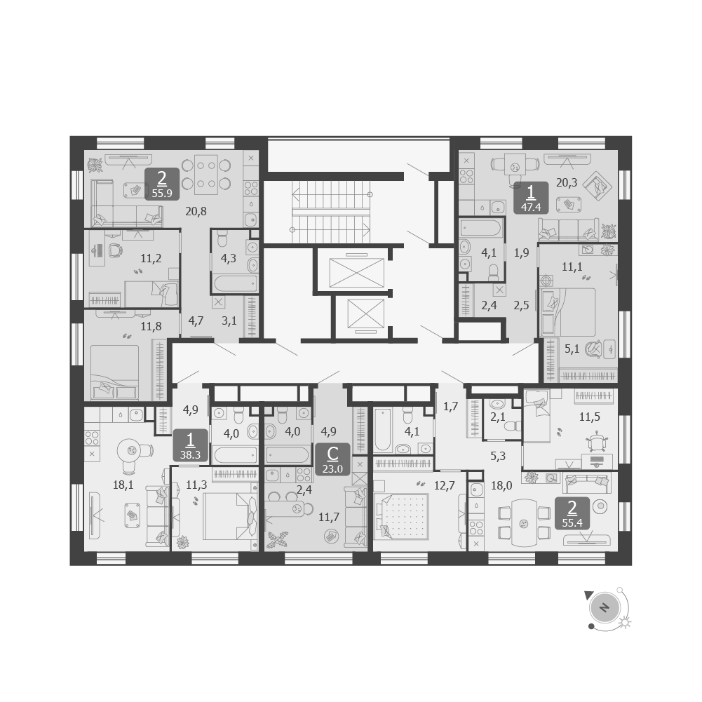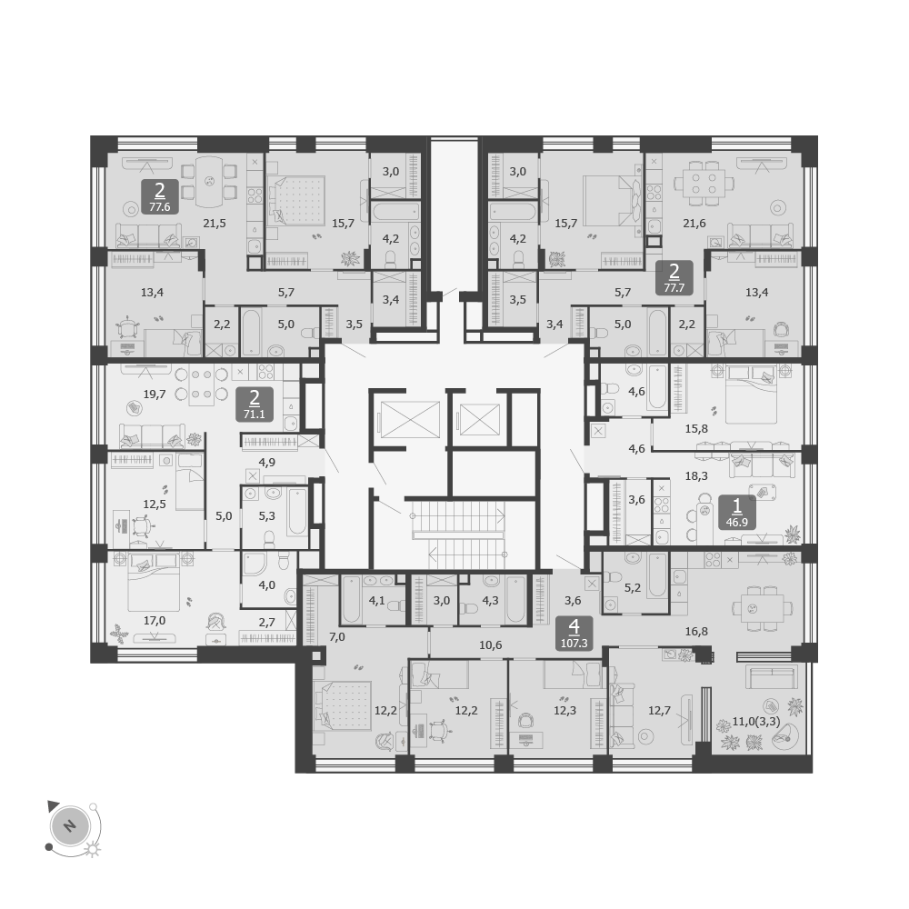 | 10.2 | Декабрь 2024 | 1 | 2 | 2 | 2 | 4 | 115.4 | 46 120 373 | без отделки | ![]() | 2 | ||
