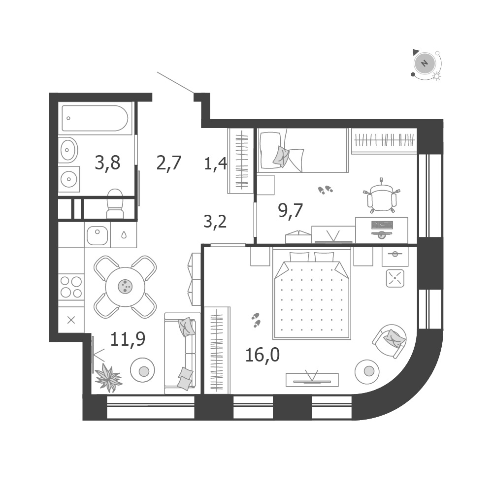 | 9 (III очередь, 3 этап) | Июнь 2028 | 1 | 2 | 8 | 8 | 1 | 37.7 | 22 943 551 | без отделки | ![]() | 8 | ||