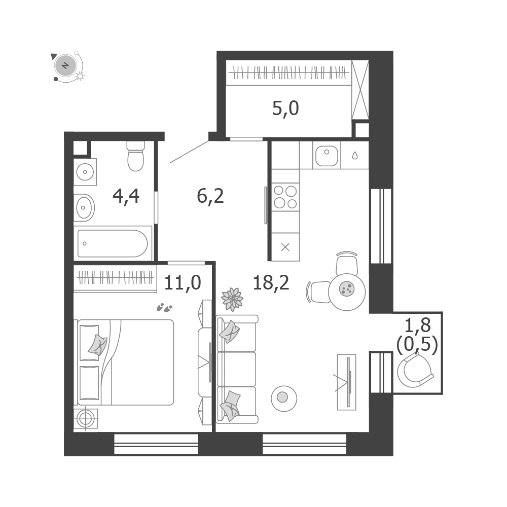 | 1 (III очередь, 2 этап) | Июнь 2028 | 2 | 2 | 5 | 5 | 1 | 42.9 | 24 957 847 | без отделки | ![]() | 5 | ||