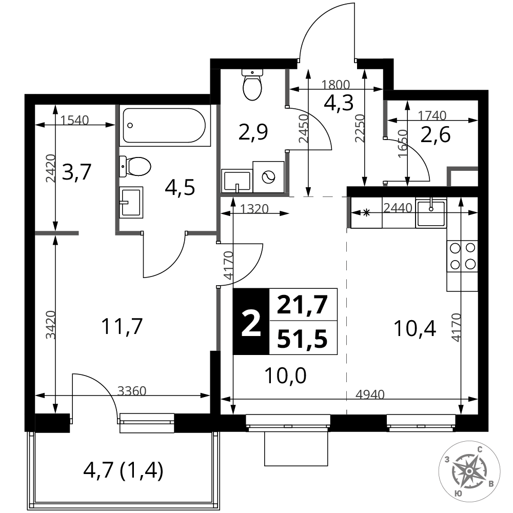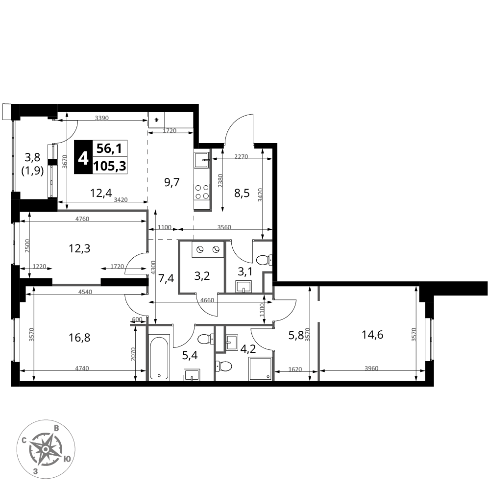 | 1 | Декабрь 2026 | 1 | 2 | 1 | 1 | 4 | 105.3 | 42 551 730 | с отделкой | ![]() | 1 |