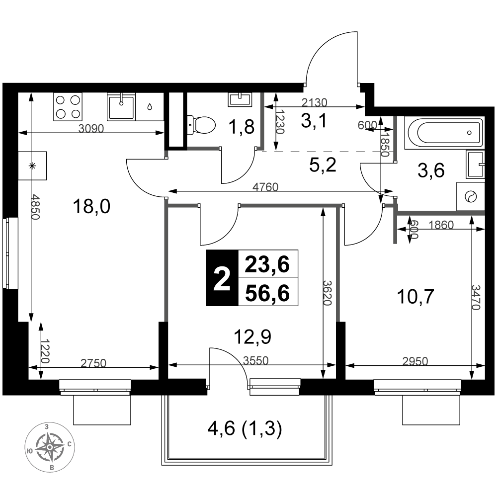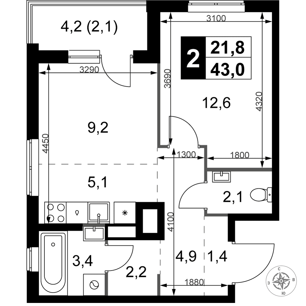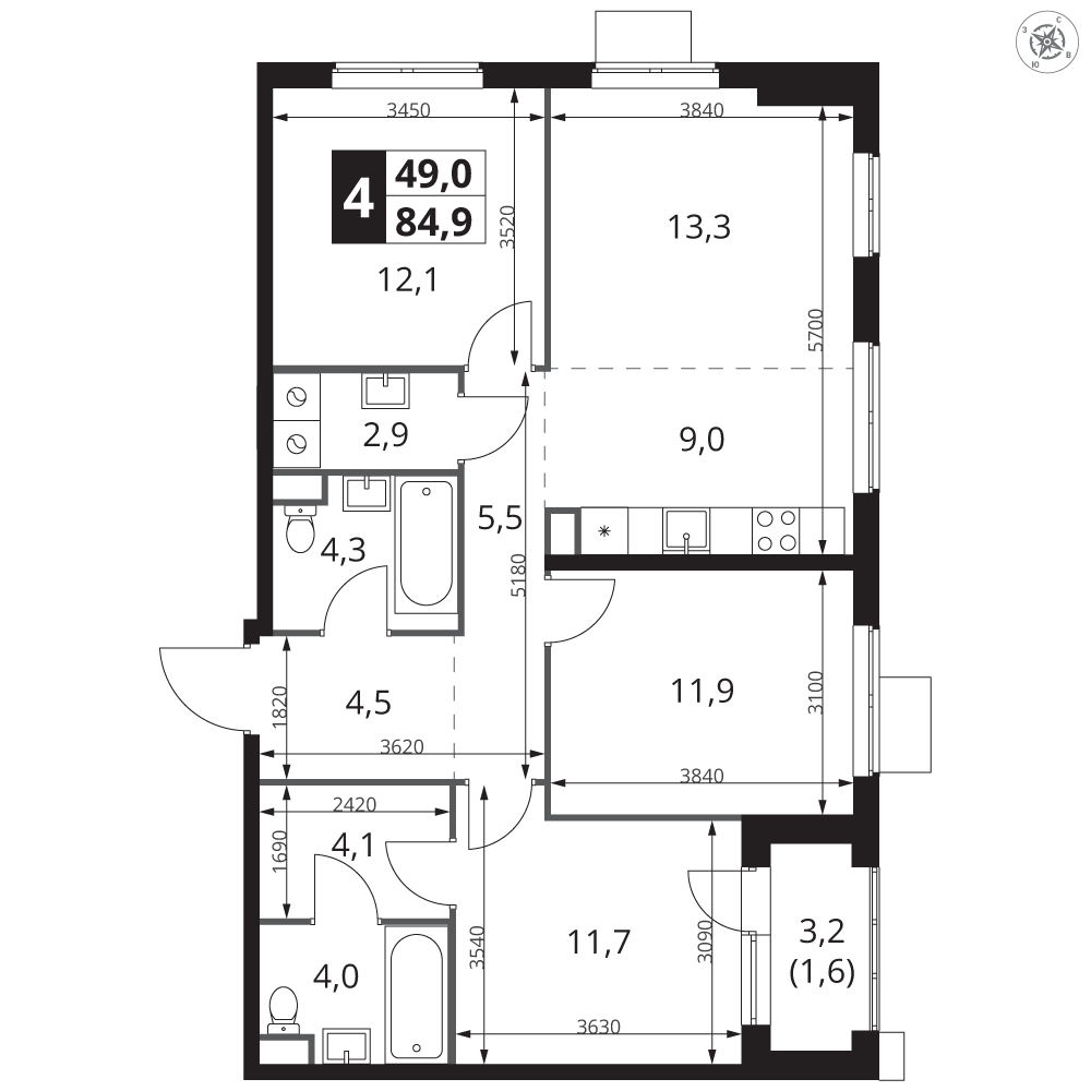 | 2 | Декабрь 2026 | 4 | 4 | 13 | 13 | 4 | 84.9 | 41 066 130 | с отделкой | ![]() | 13 | ||