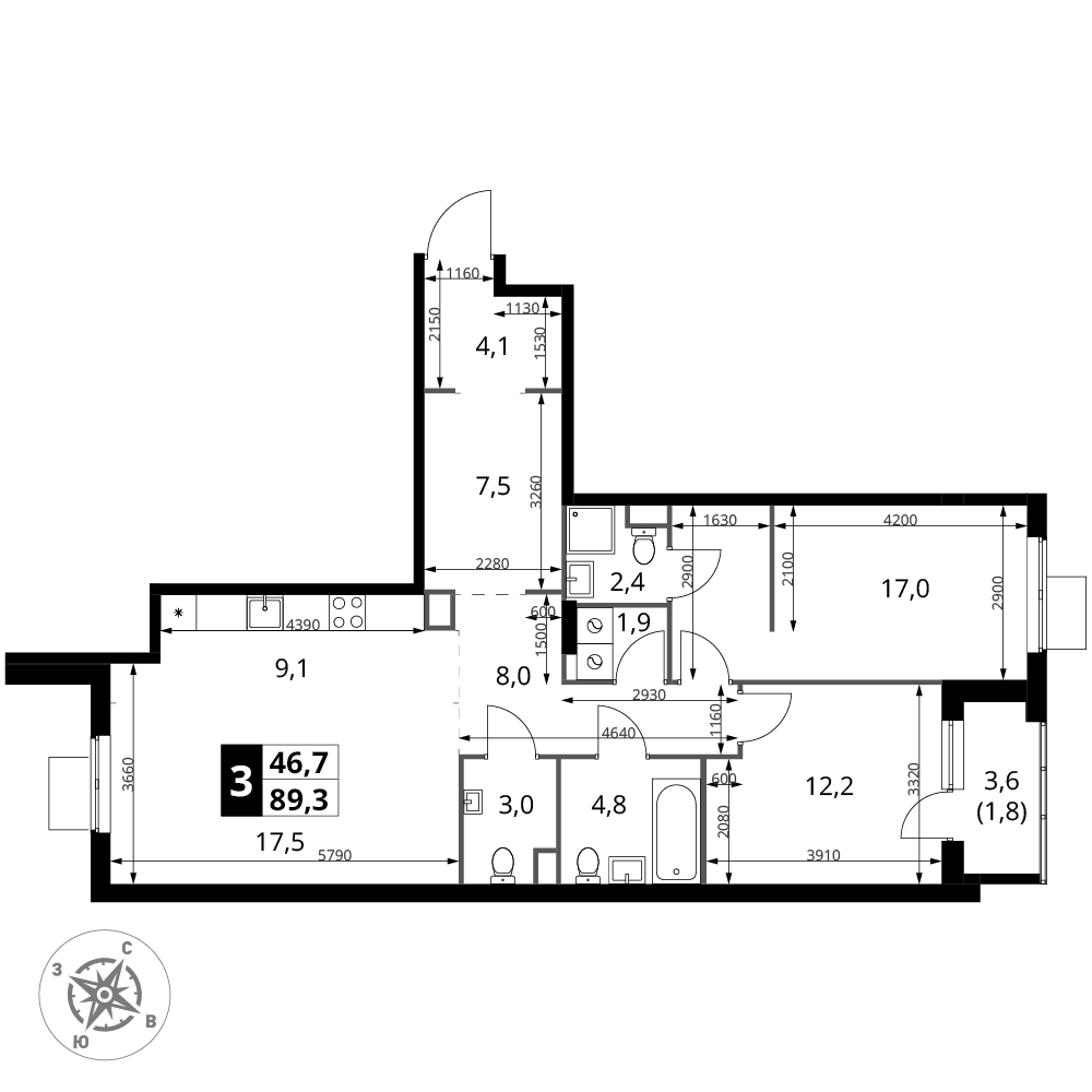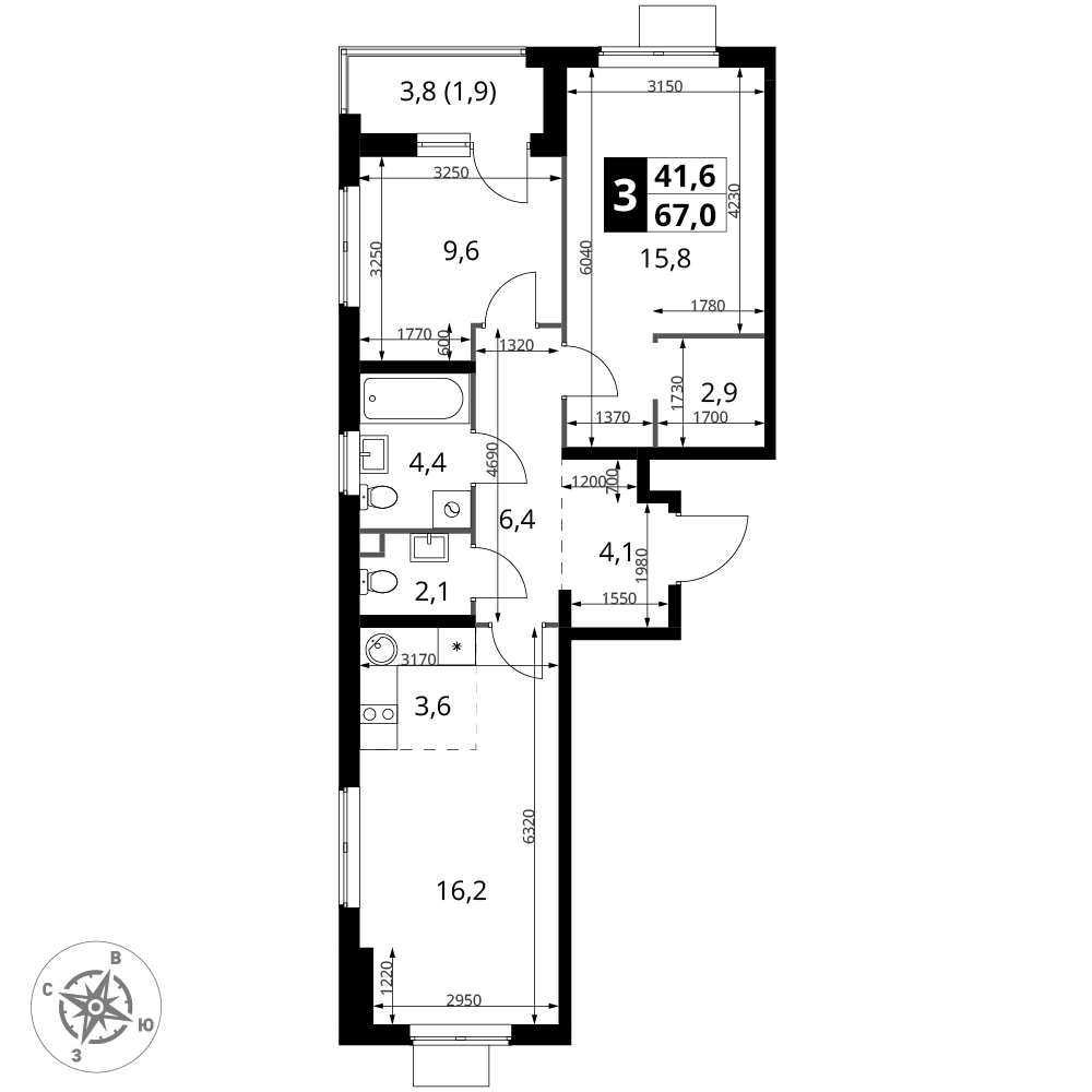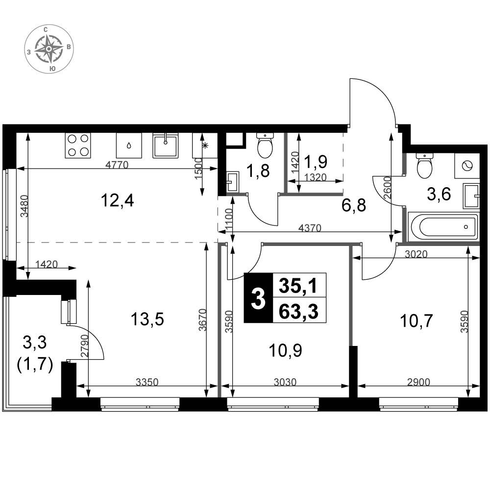 | 3 | Сентябрь 2028 | 7 | 3 | 1 | 1 | 3 | 63.3 | 25 788 420 | с отделкой | 1 | |||