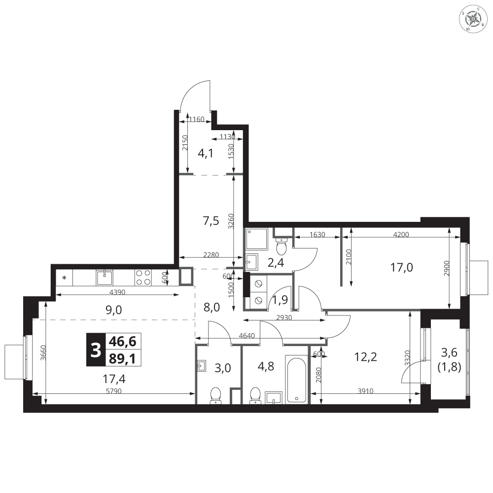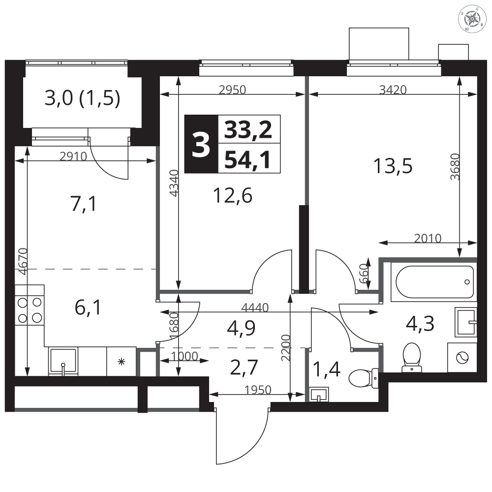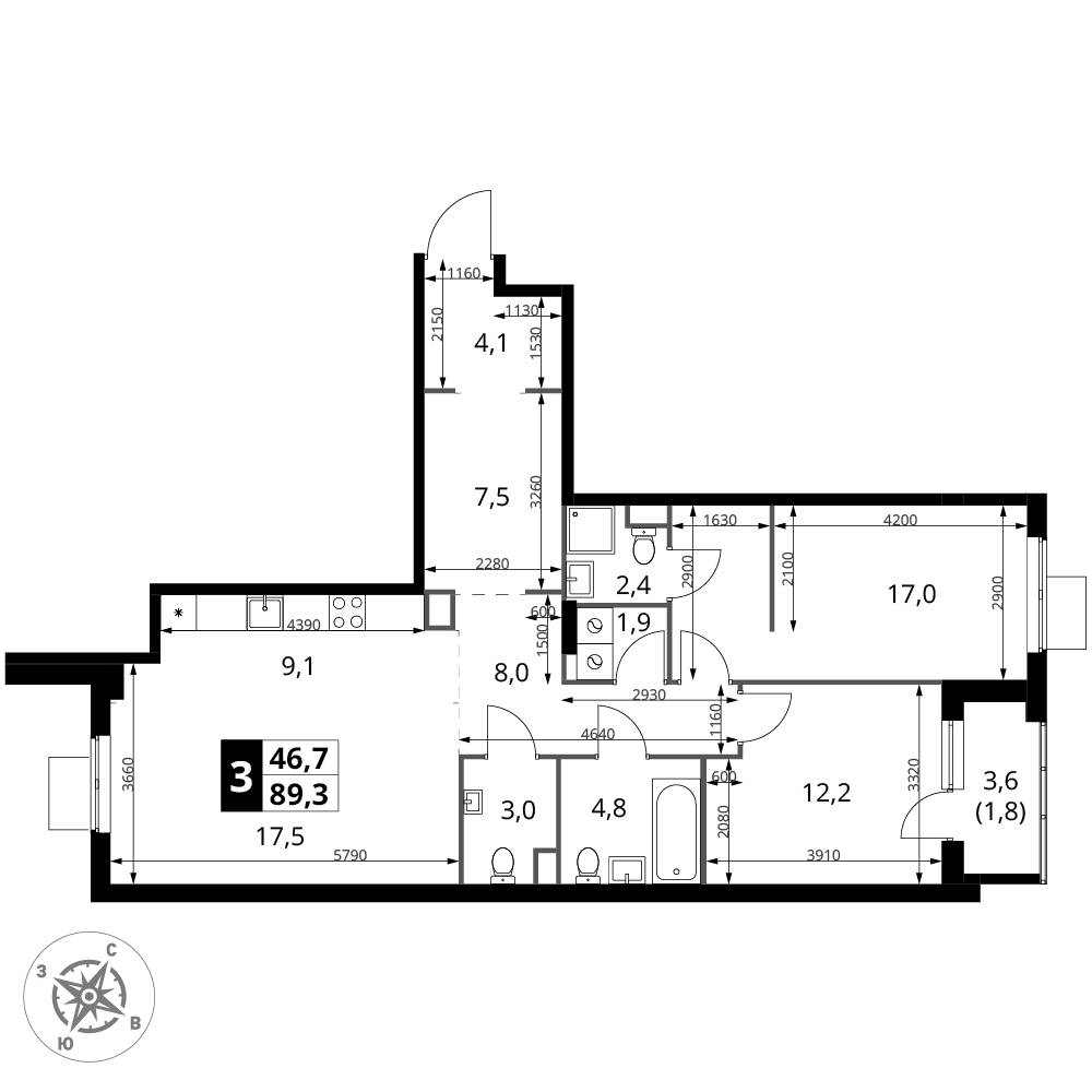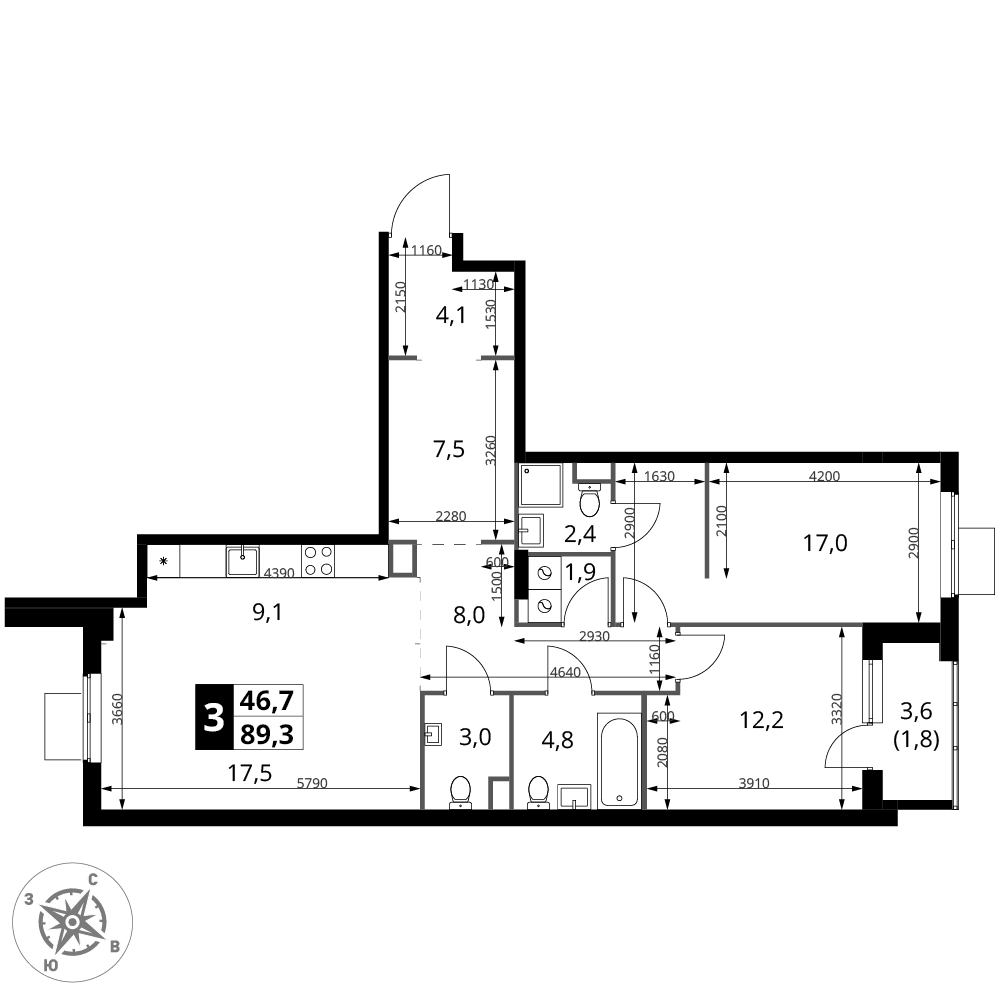| 3 | Сентябрь 2028 | 7 | 3 | 1 | 1 | 3 | 63.3 | 25 788 420 | с отделкой | 1 | |||