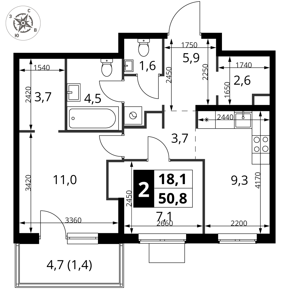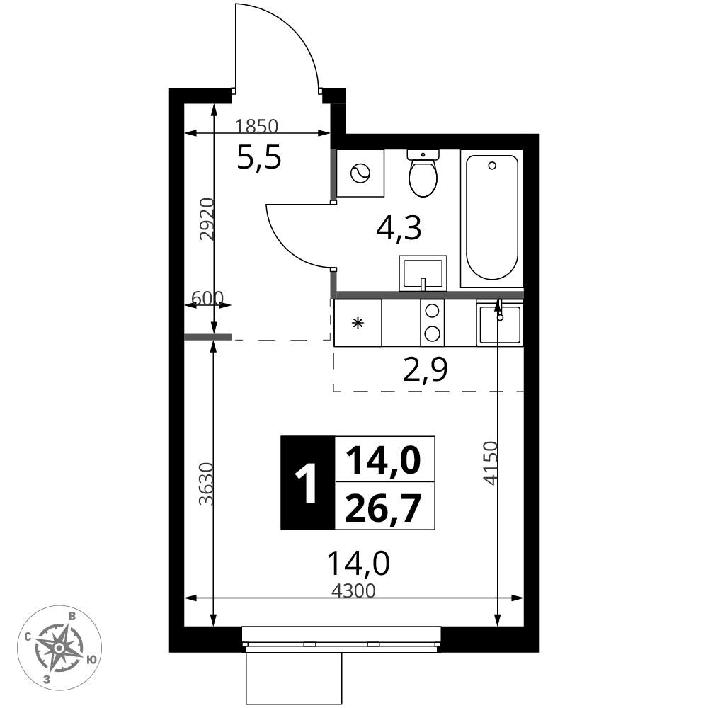 | 2 | Декабрь 2026 | 4 | 11 | 14 | 14 | 3 | 89.3 | 34 960 950 | с отделкой | ![]() | 14 | ||