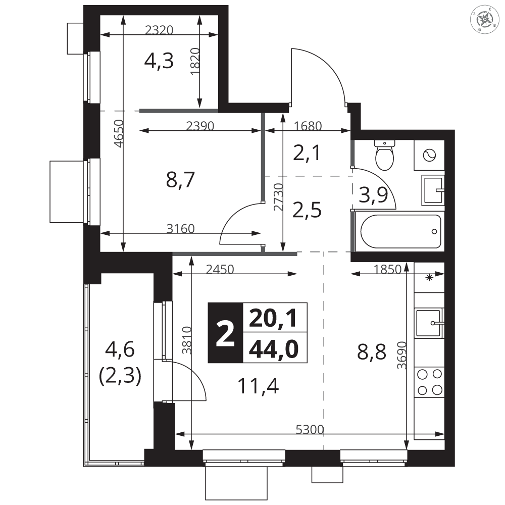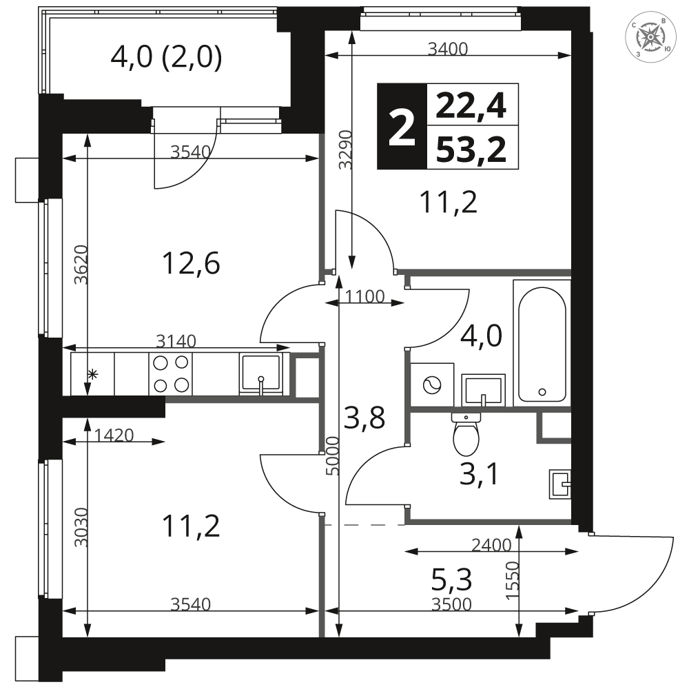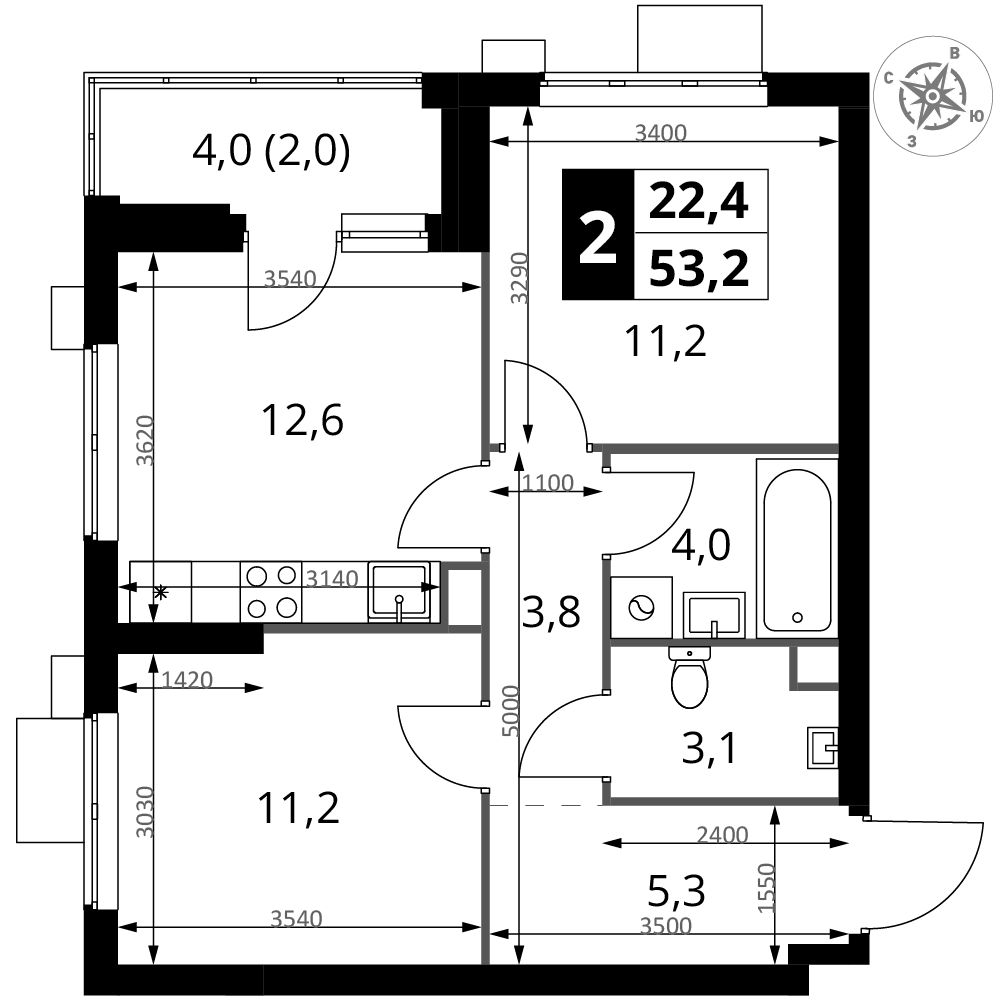 | 1 | Декабрь 2026 | 1 | 12 | 2 | 2 | 2 | 53.2 | 25 679 640 | с отделкой | ![]() | 2 | ||