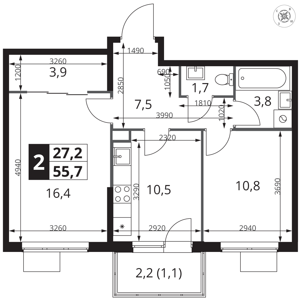 | 1 | Декабрь 2026 | 1 | 24 | 10 | 10 | 2 | 55.7 | 28 696 640 | с отделкой | ![]() | 10 | ||