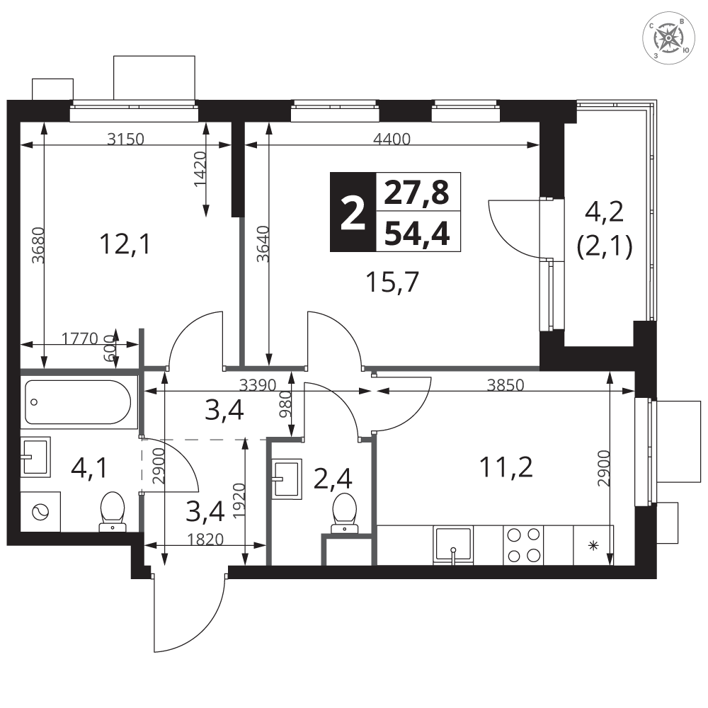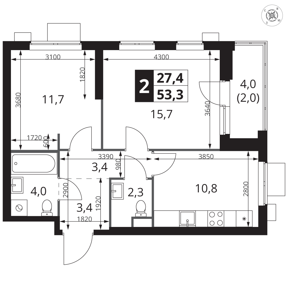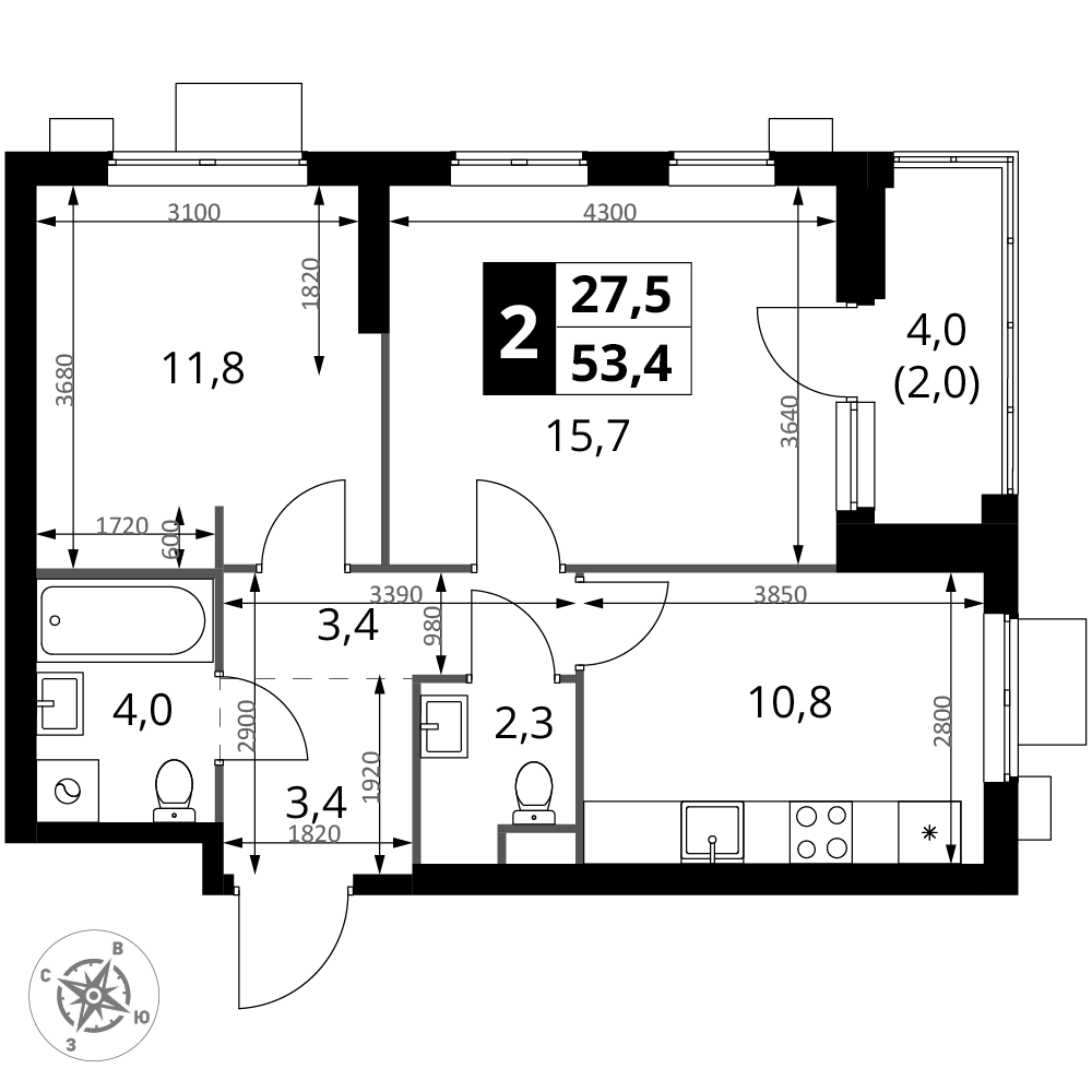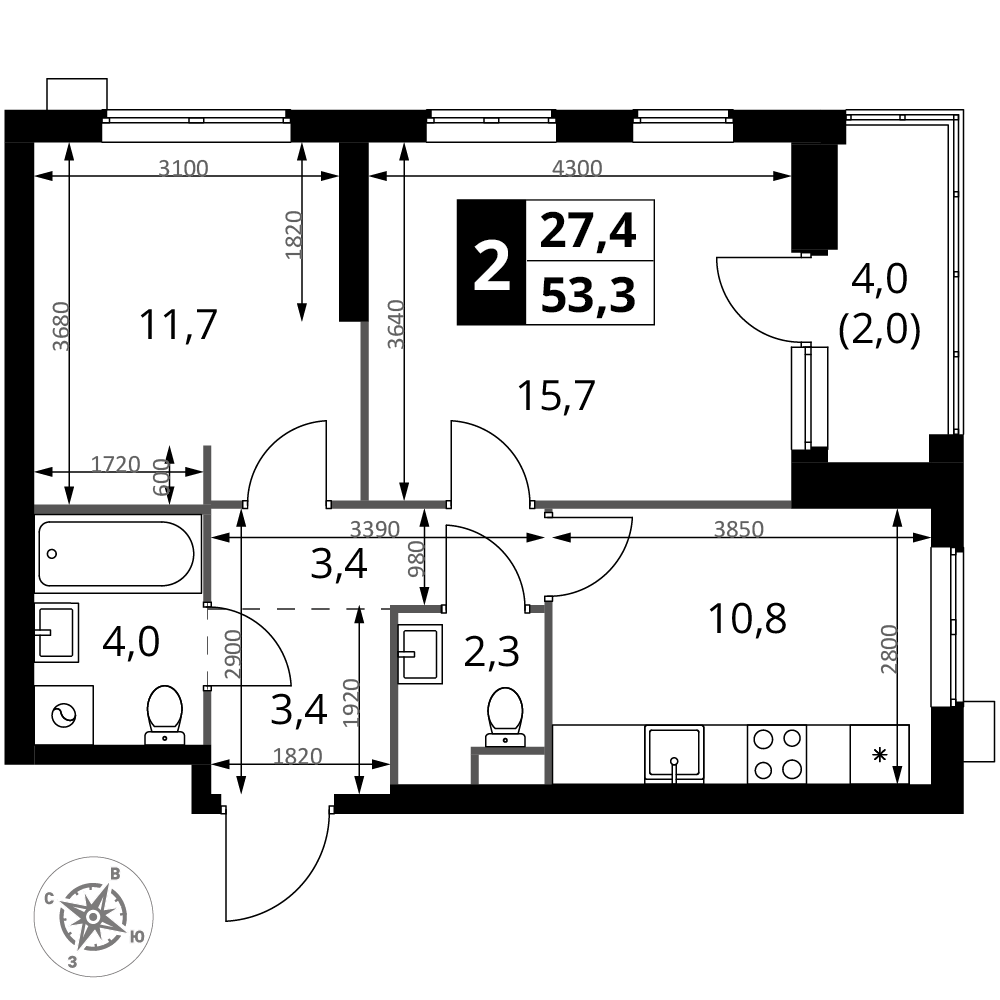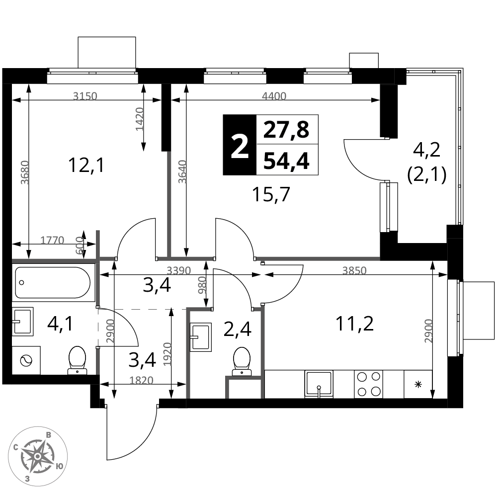 | 4 | Сентябрь 2028 | 8 | 27 | 4 | 4 | 2 | 54.2 | 20 671 880 | без отделки | 4 | |||