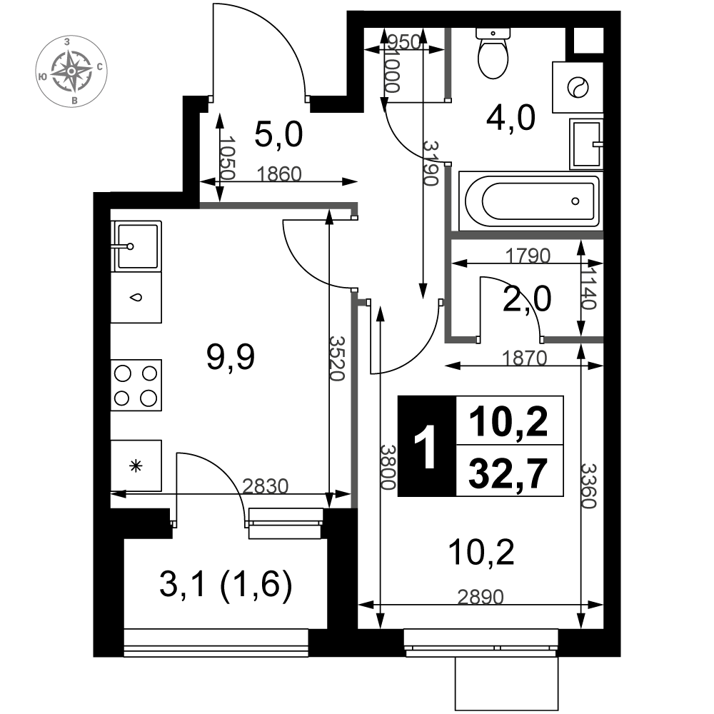 | 3 | Сентябрь 2028 | 5 | 9 | 1 | 1 | 1 | 31.6 | 17 332 600 | с отделкой | 1 | |||