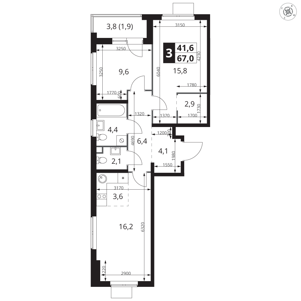 | 3 | Сентябрь 2028 | 6 | 3 | 1 | 1 | 2 | 58.9 | 21 097 980 | без отделки | 1 | |||