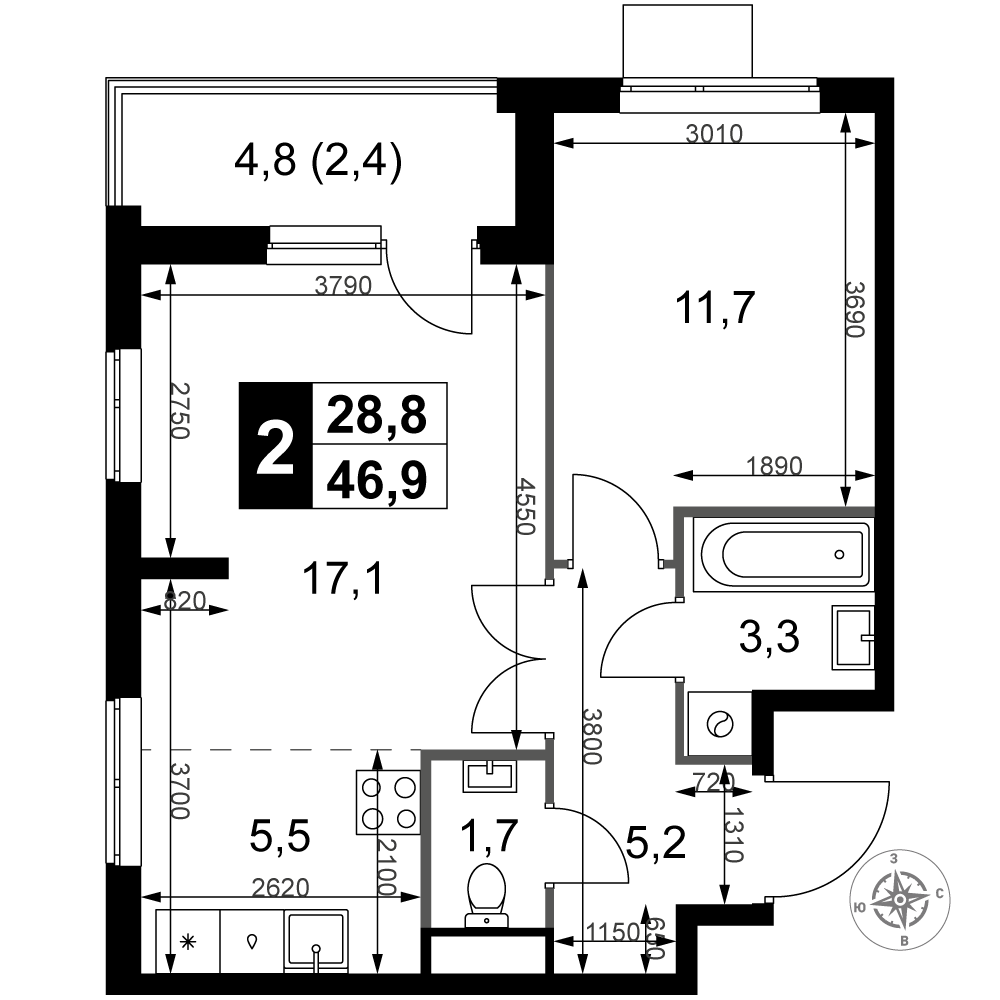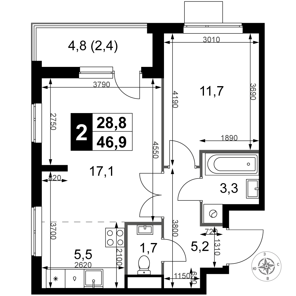 | 4 | Сентябрь 2028 | 8 | 17 | 2 | 2 | 2 | 52.4 | 19 854 360 | без отделки | 2 | |||