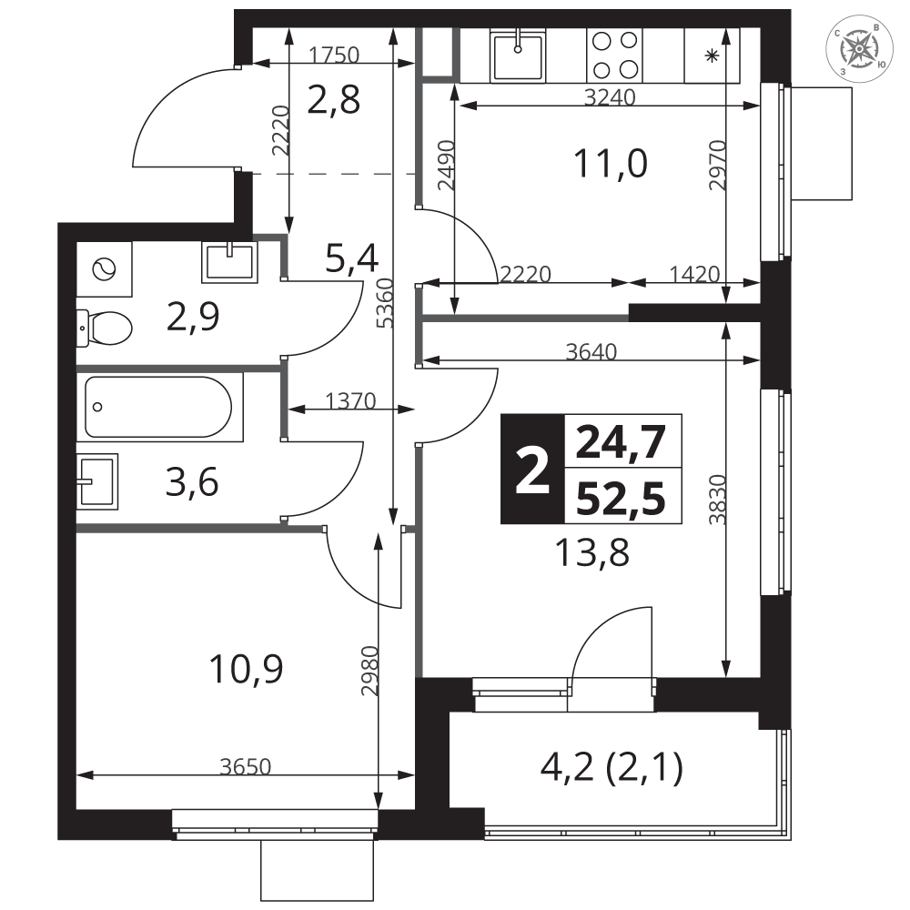 | 4 | Сентябрь 2028 | 8 | 13 | 2 | 2 | 2 | 52.4 | 21 735 520 | с отделкой | 2 | |||