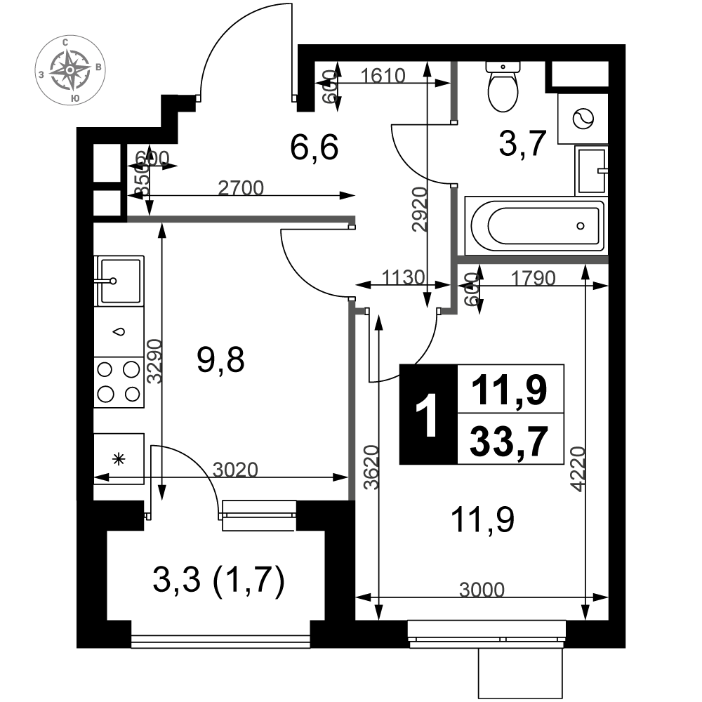 | 3 | Сентябрь 2028 | 6 | 9 | 7 | 7 | 3 | 66.4 | 24 262 560 | с отделкой | 7 | |||