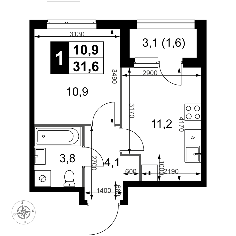 | 3 | Сентябрь 2028 | 5 | 13 | 1 | 1 | 1 | 31.6 | 17 364 200 | с отделкой | 1 | |||