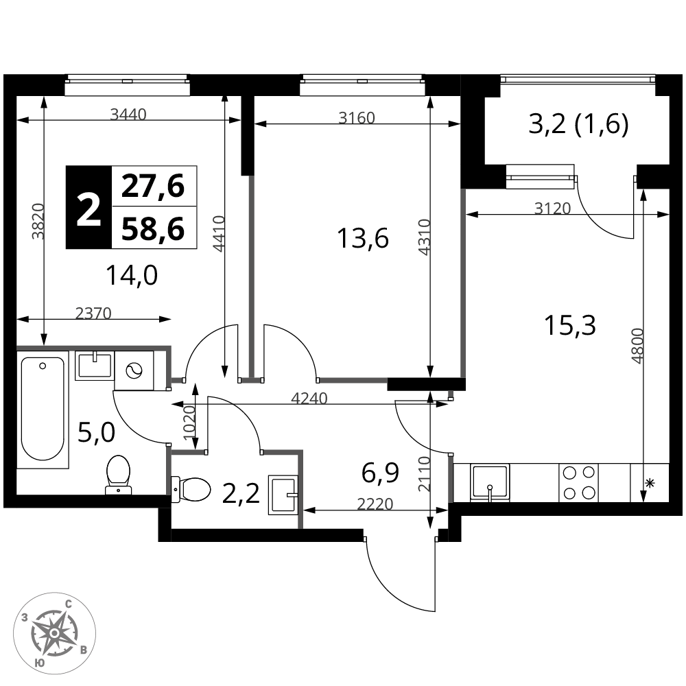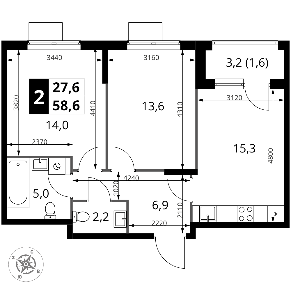 | 1 | Декабрь 2026 | 2 | 2 | 4 | 4 | 2 | 58.6 | 28 174 880 | с отделкой | ![]() | 4 | ||