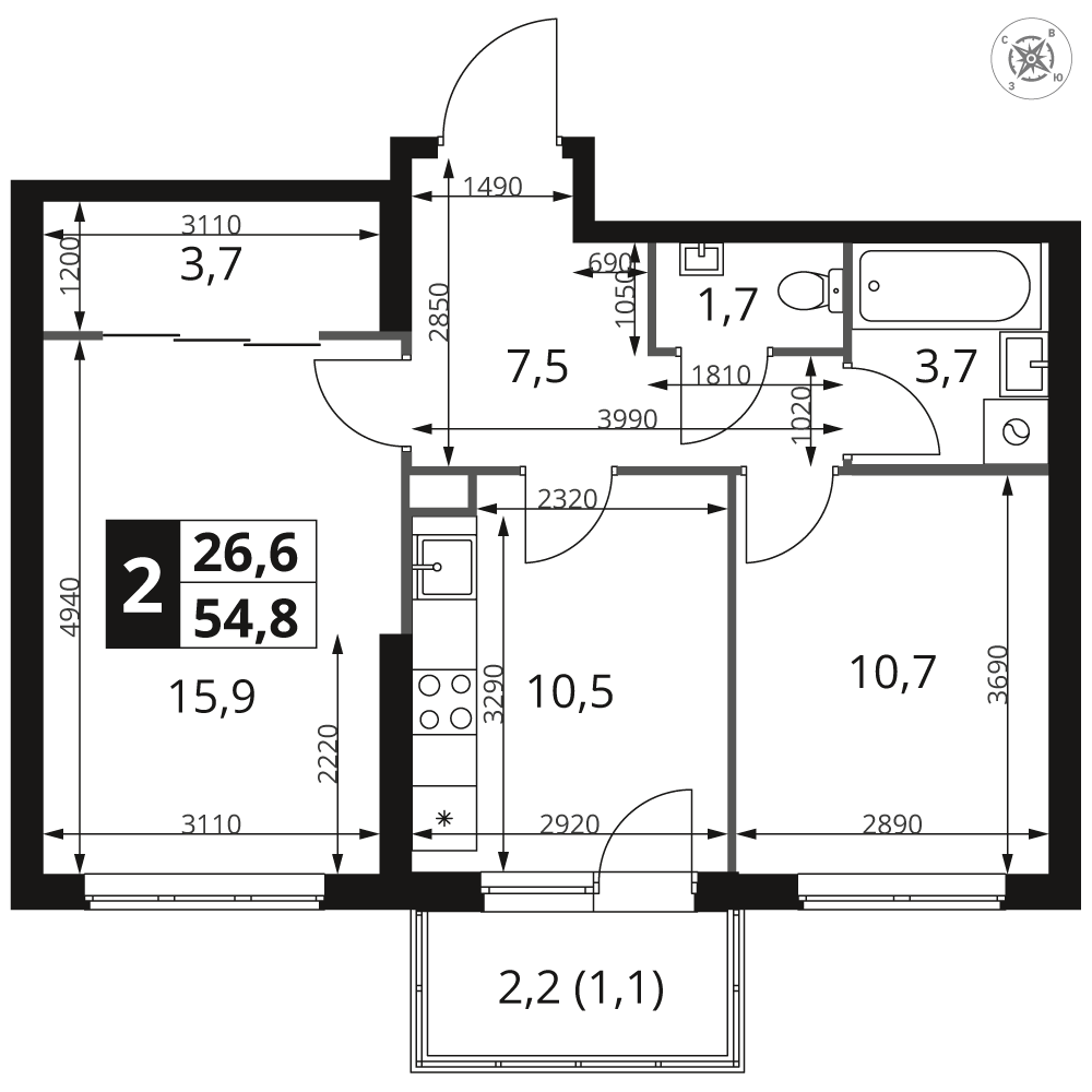 | 1 | Декабрь 2026 | 1 | 22 | 2 | 2 | 2 | 54.4 | 26 862 720 | с отделкой | ![]() | 2 | ||